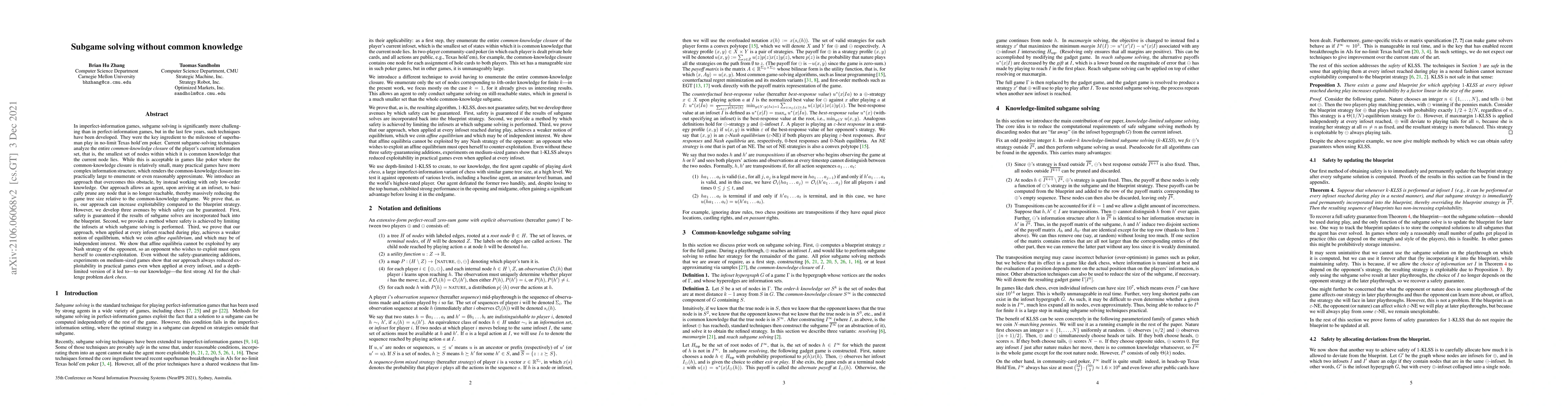 In imperfect-information games, subgame solving is significantly more challenging than in perfect-information games, but in the last few years, such techniques have been developed. They were the key ingredient to the milestone of superhuman play in no-limit Texas hold'em poker. Current subgame-solving techniques analyze the entire common-knowledge closure of the player's current information set, that is, the smallest set of nodes within which it is common knowledge that the current node lies. While this is acceptable in games like poker where the common-knowledge closure is relatively small, many practical games have more complex information structure, which renders the common-knowledge closure impractically large to enumerate or even reasonably approximate. We introduce an approach that overcomes this obstacle, by instead working with only low-order knowledge. Our approach allows an agent, upon arriving at an infoset, to basically prune any node that is no longer reachable, thereby massively reducing the game tree size relative to the common-knowledge subgame. We prove that, as is, our approach can increase exploitability compared to the blueprint strategy. However, we develop three avenues by which safety can be guaranteed. Even without the safety-guaranteeing additions, experiments on medium-sized games show that our approach always reduced exploitability in practical games even when applied at every infoset, and a depth-limited version of it led to -- to our knowledge -- the first strong AI for the challenge problem dark chess.