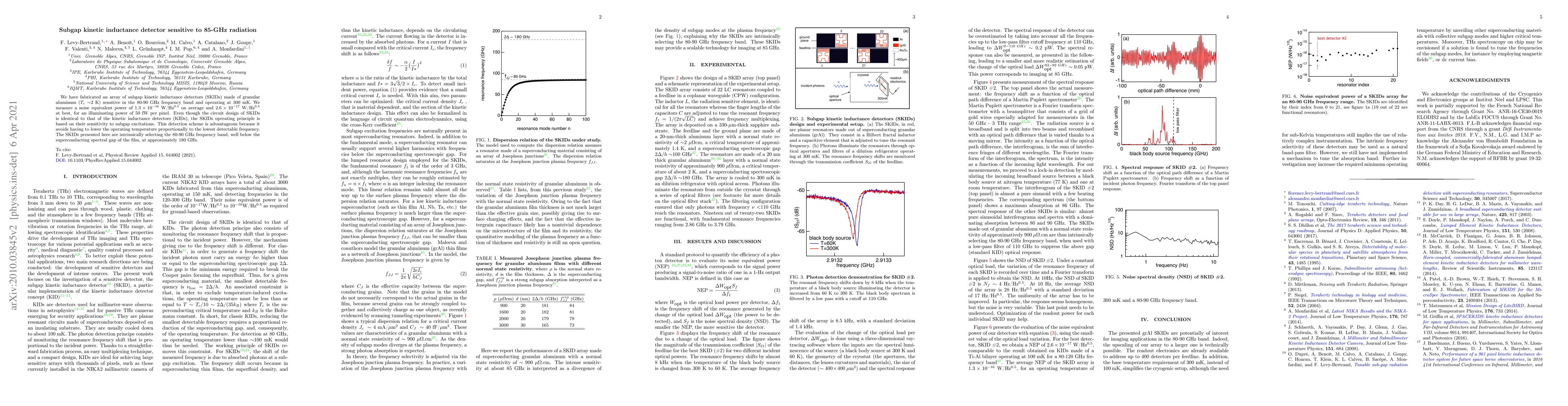 We have fabricated an array of subgap kinetic inductance detectors (SKIDs) made of granular aluminum ($T_c\sim$2~K) sensitive in the 80-90 GHz frequency band and operating at 300~mK. We measure a noise equivalent power of $1.3\times10^{-16}$~W/Hz$^{0.5}$ on average and $2.6\times10^{-17}$~W/Hz$^{0.5}$ at best, for an illuminating power of 50~fW per pixel. Even though the circuit design of SKIDs is identical to that of the kinetic inductance detectors (KIDs), the SKIDs operating principle is based on their sensitivity to subgap excitations. This detection scheme is advantageous because it avoids having to lower the operating temperature proportionally to the lowest detectable frequency. The SKIDs presented here are intrinsically selecting the 80-90 GHz frequency band, well below the superconducting spectral gap of the film, at approximately 180 GHz.
