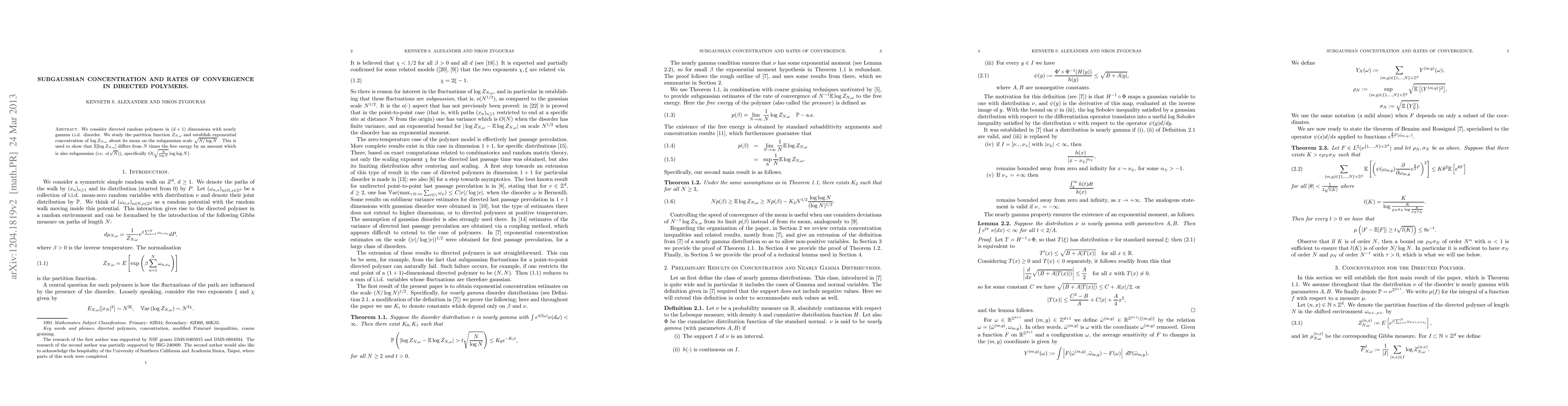 This paper investigates the partition function of directed random polymers in $(d+1)$ dimensions with nearly gamma i.i.d. disorder, establishing subgaussian concentration for $\log Z_{N,\omega}$ and demonstrating that $\mathbb{E}[\log Z_{N,\omega}]$ deviates from $N$ times the free energy by a subgaussian amount $O(\sqrt{\frac{N}{\log N}}\log \log N)$.
