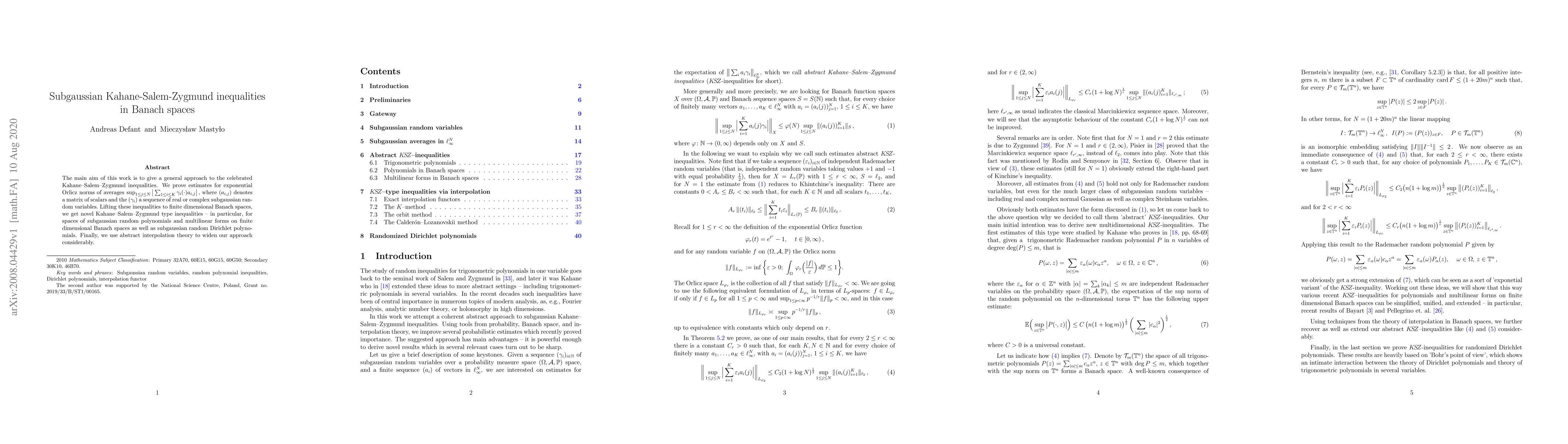This paper presents a general method for deriving Kahane-Salem-Zygmund inequalities, focusing on exponential Orlicz norms of averages involving subgaussian random variables. It extends these inequalities to finite-dimensional Banach spaces, including subgaussian random polynomials and multilinear forms.