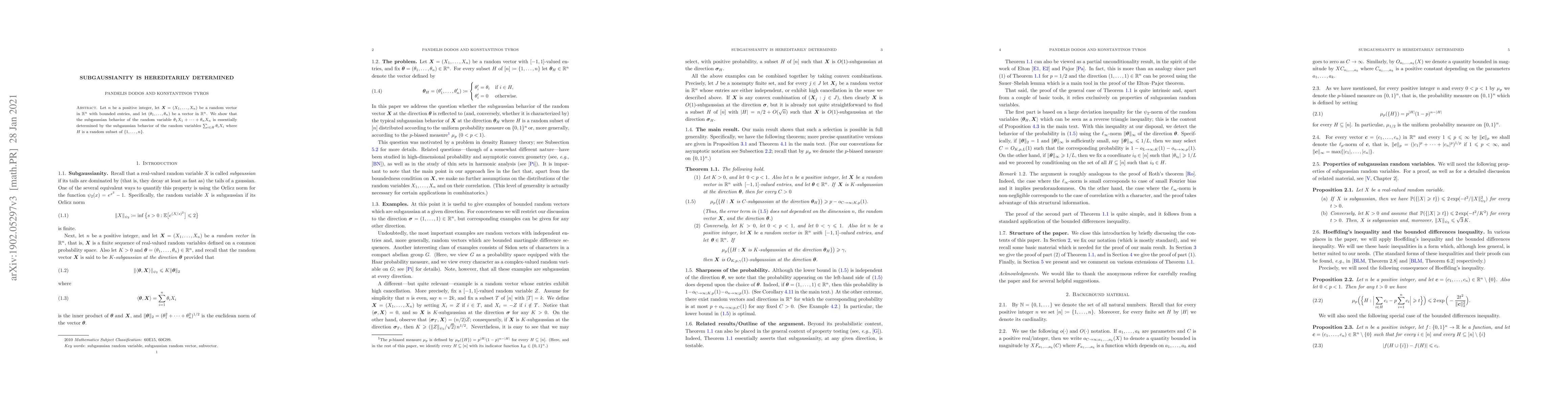 Let $n$ be a positive integer, let $\boldsymbol{X}=(X_1,\dots,X_n)$ be a random vector in $\mathbb{R}^n$ with bounded entries, and let $(\theta_1,\dots,\theta_n)$ be a vector in $\mathbb{R}^n$. We show that the subgaussian behavior of the random variable $\theta_1 X_1+\dots +\theta_n X_n$ is essentially determined by the subgaussian behavior of the random variables $\sum_{i\in H} \theta_i X_i$ where $H$ is a random subset of $\{1,\dots,n\}$.