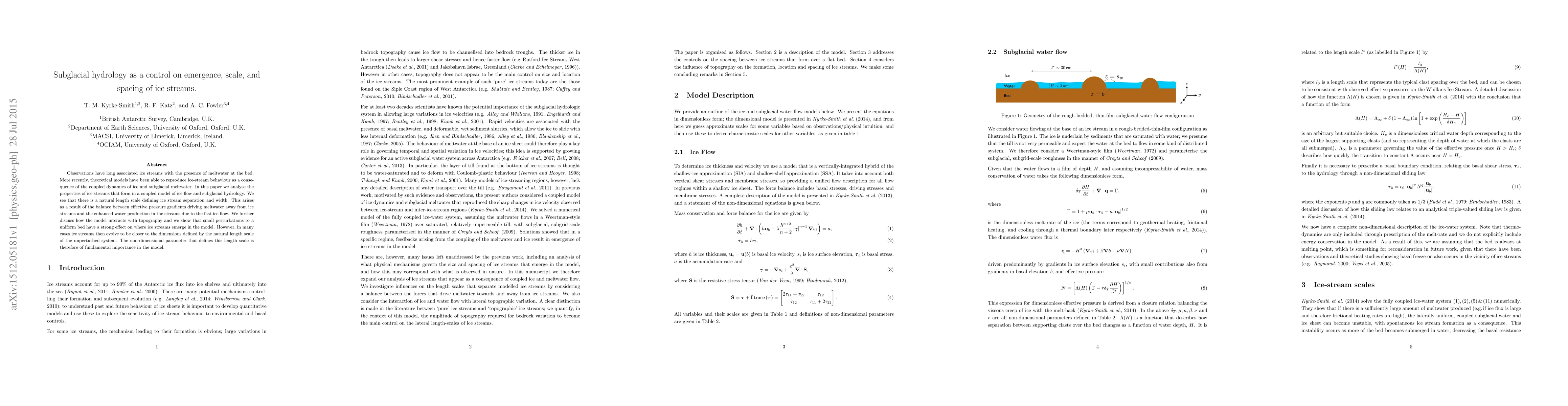 This research identifies a natural length scale governing ice stream separation and width, resulting from balanced effective pressure gradients and enhanced water production in ice streams. The study highlights the significant impact of bed topography on ice stream emergence, yet their dimensions often evolve towards the unperturbed length scale defined by a non-dimensional parameter.