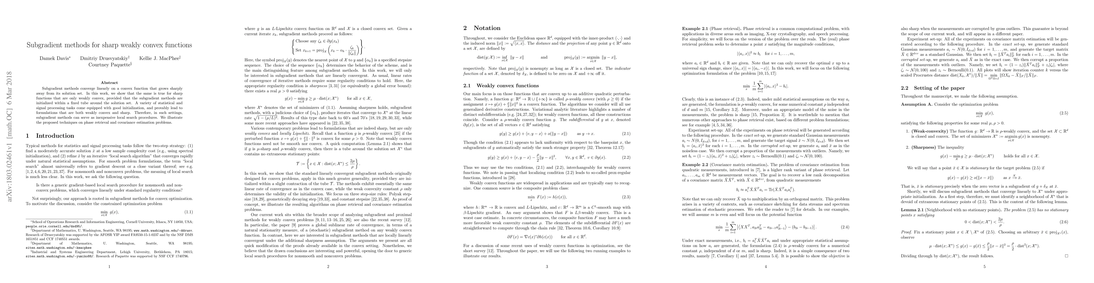This paper demonstrates that subgradient methods can linearly converge for sharp weakly convex functions when initialized within a fixed tube around the solution set. The techniques are illustrated through applications in phase retrieval and covariance estimation, showing their effectiveness in statistical and signal processing tasks.
