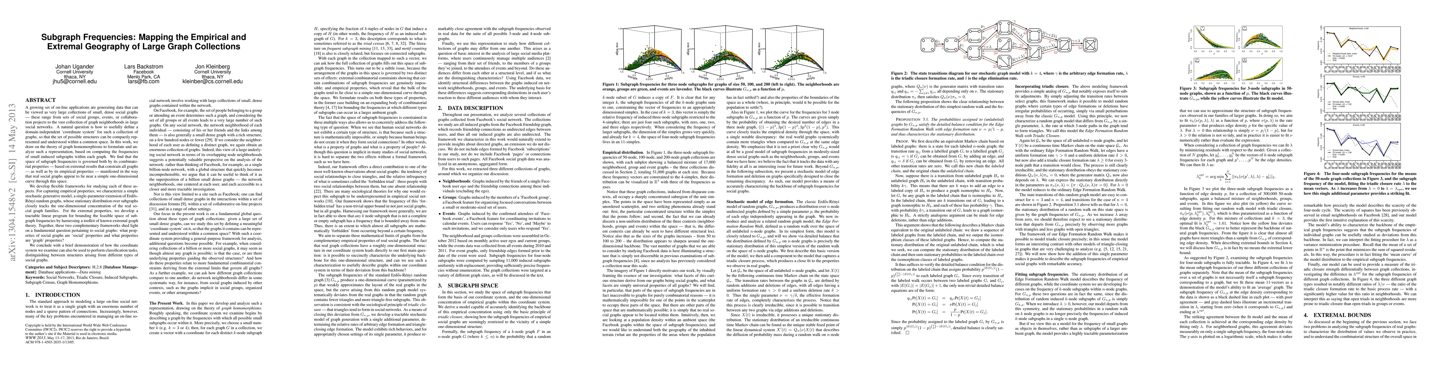 A growing set of on-line applications are generating data that can be viewed as very large collections of small, dense social graphs -- these range from sets of social groups, events, or collaboration projects to the vast collection of graph neighborhoods in large social networks. A natural question is how to usefully define a domain-independent coordinate system for such a collection of graphs, so that the set of possible structures can be compactly represented and understood within a common space. In this work, we draw on the theory of graph homomorphisms to formulate and analyze such a representation, based on computing the frequencies of small induced subgraphs within each graph. We find that the space of subgraph frequencies is governed both by its combinatorial properties, based on extremal results that constrain all graphs, as well as by its empirical properties, manifested in the way that real social graphs appear to lie near a simple one-dimensional curve through this space. We develop flexible frameworks for studying each of these aspects. For capturing empirical properties, we characterize a simple stochastic generative model, a single-parameter extension of Erdos-Renyi random graphs, whose stationary distribution over subgraphs closely tracks the concentration of the real social graph families. For the extremal properties, we develop a tractable linear program for bounding the feasible space of subgraph frequencies by harnessing a toolkit of known extremal graph theory. Together, these two complementary frameworks shed light on a fundamental question pertaining to social graphs: what properties of social graphs are 'social' properties and what properties are 'graph' properties? We conclude with a brief demonstration of how the coordinate system we examine can also be used to perform classification tasks, distinguishing between social graphs of different origins.