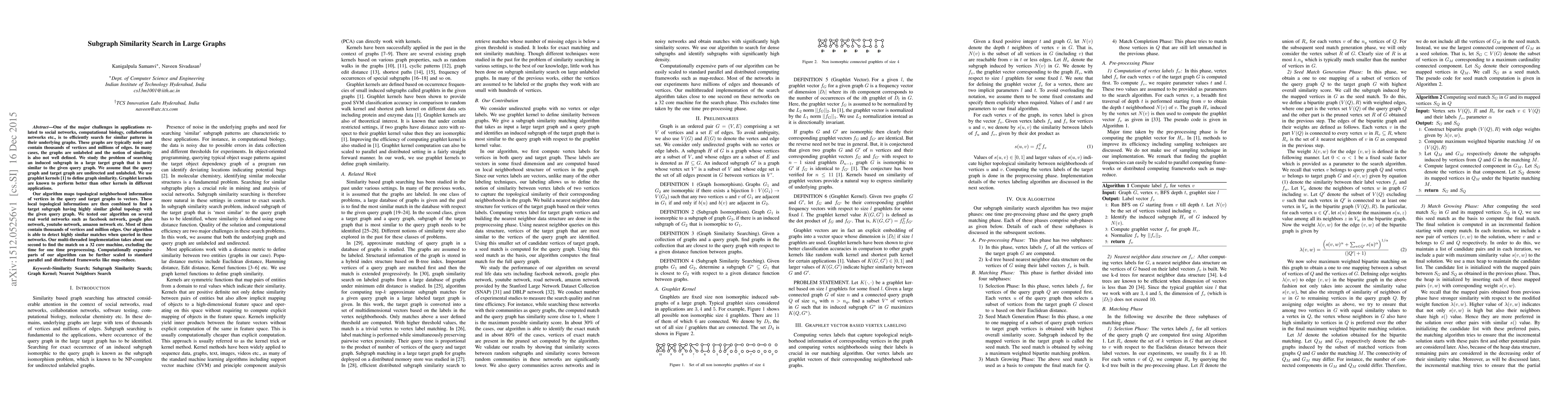 A novel kernel function was developed, which enables efficient similarity search in large graphs.