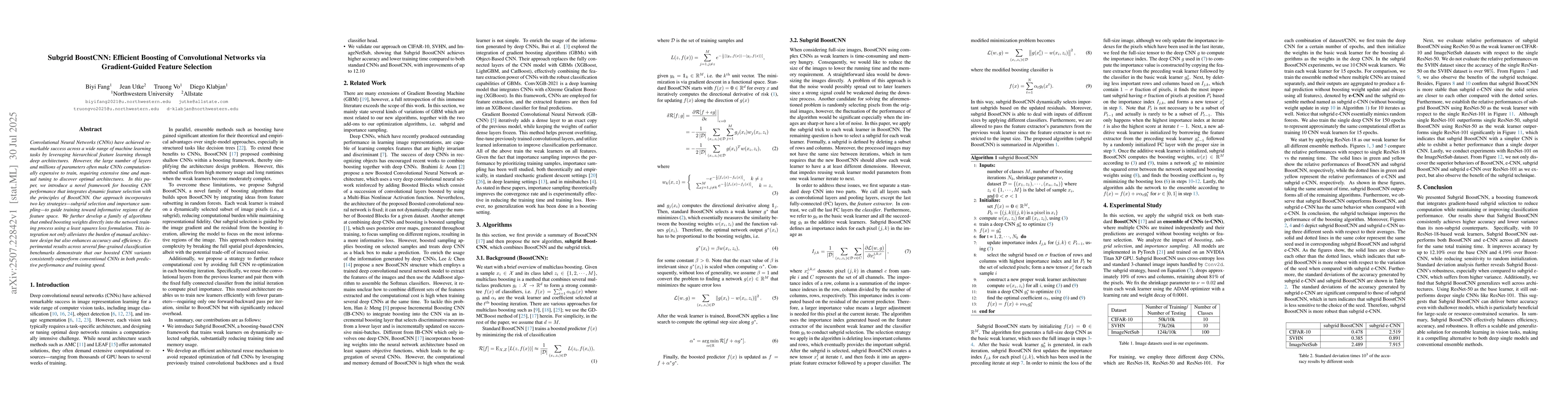 Convolutional Neural Networks (CNNs) have achieved remarkable success across a wide range of machine learning tasks by leveraging hierarchical feature learning through deep architectures. However, the large number of layers and millions of parameters often make CNNs computationally expensive to train, requiring extensive time and manual tuning to discover optimal architectures. In this paper, we introduce a novel framework for boosting CNN performance that integrates dynamic feature selection with the principles of BoostCNN. Our approach incorporates two key strategies: subgrid selection and importance sampling, to guide training toward informative regions of the feature space. We further develop a family of algorithms that embed boosting weights directly into the network training process using a least squares loss formulation. This integration not only alleviates the burden of manual architecture design but also enhances accuracy and efficiency. Experimental results across several fine-grained classification benchmarks demonstrate that our boosted CNN variants consistently outperform conventional CNNs in both predictive performance and training speed.