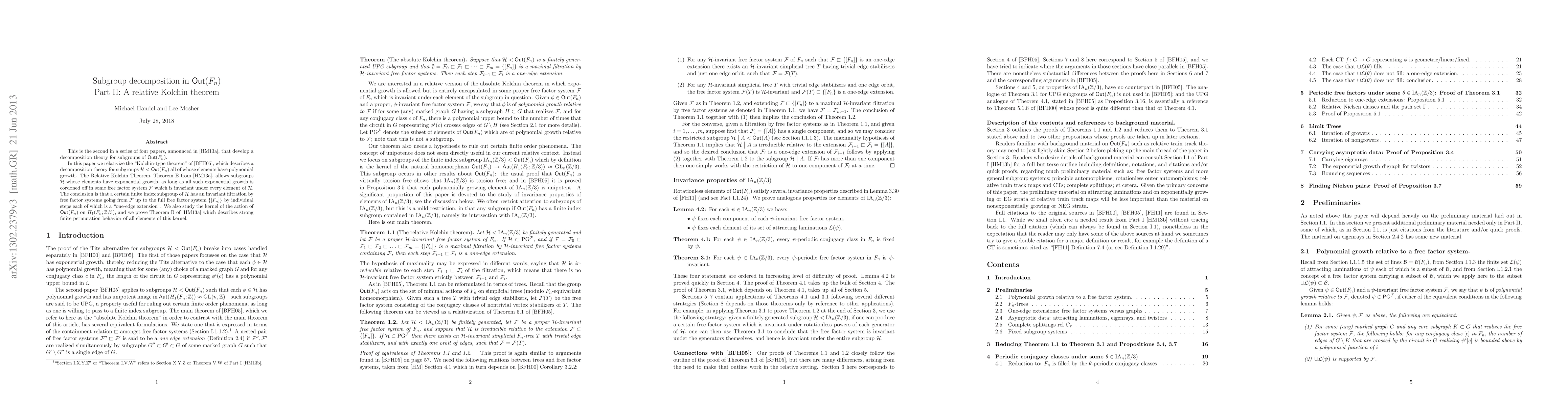 This paper extends the decomposition theory for subgroups of Out(F_n) by relativizing the Kolchin theorem, allowing for subgroups with exponential growth confined to invariant free factor systems. It concludes that a finite index subgroup of such a subgroup has a filtration by free factor systems, each step being a "one-edge extension." Additionally, it proves strong finite permutation behavior of the kernel of Out(F_n) acting on homology with Z/3 coefficients.