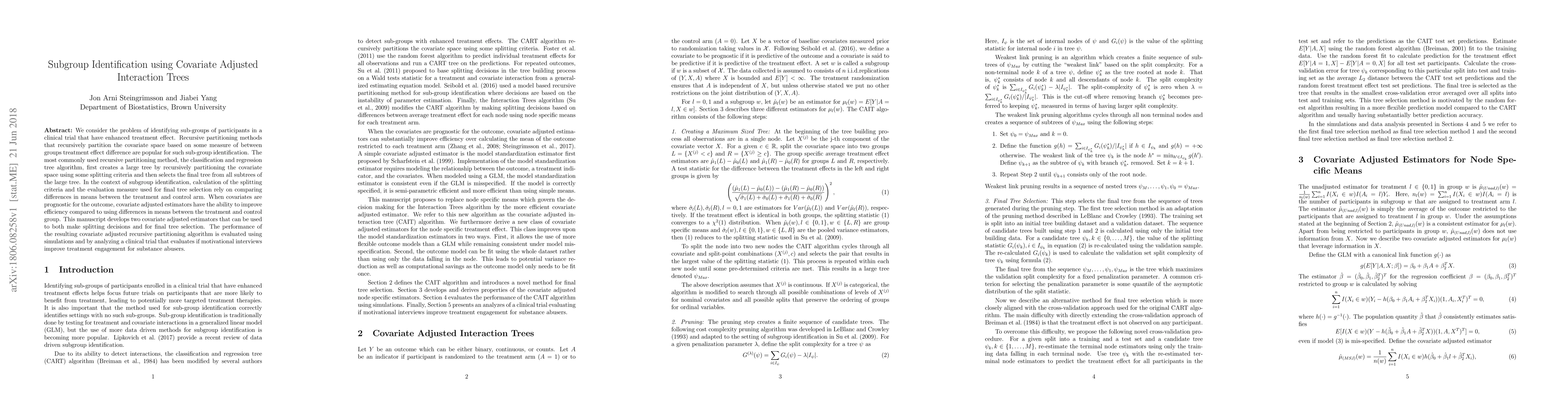 This paper proposes a new recursive partitioning method for identifying sub-groups in clinical trials that show enhanced treatment effects, using covariate-adjusted estimators to improve efficiency over traditional methods. The performance of the proposed method is validated through simulations and a clinical trial analysis.
