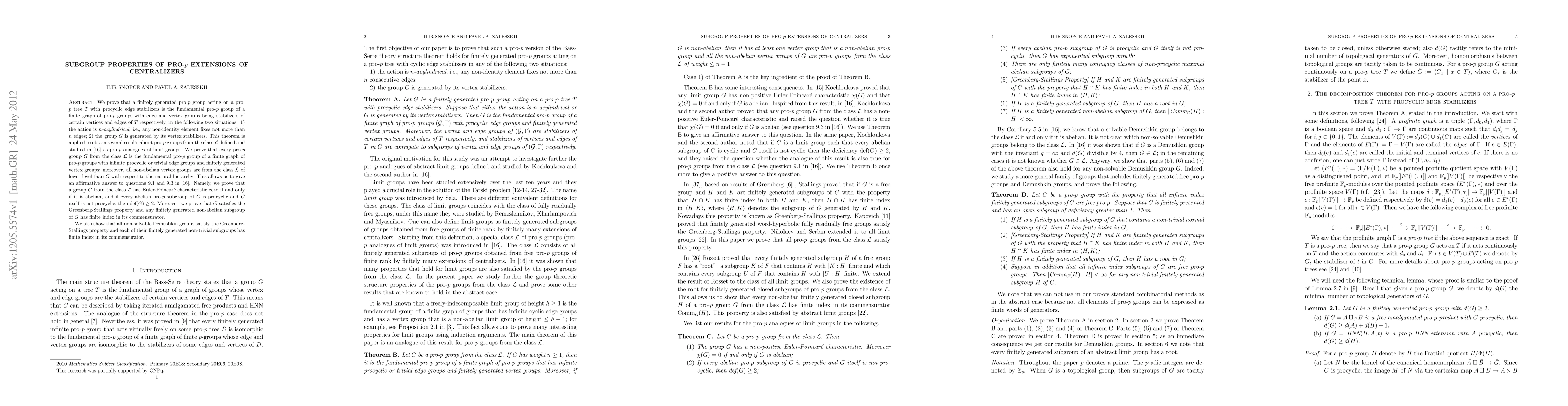 We prove that a finitely generated pro-$p$ group acting on a pro-$p$ tree $T$ with procyclic edge stabilizers is the fundamental pro-$p$ group of a finite graph of pro-$p$ groups with edge and vertex groups being stabilizers of certain vertices and edges of $T$ respectively, in the following two situations: 1) the action is $n$-acylindrical, i.e., any non-identity element fixes not more than $n$ edges; 2) the group $G$ is generated by its vertex stabilizers. This theorem is applied to obtain several results about pro-$p$ groups from the class $\mathcal{L}$ defined and studied in [Math. Z. 267 (2011), 109-128] as pro-$p$ analogues of limit groups. We prove that every pro-$p$ group $G$ from the class $\mathcal{L}$ is the fundamental pro-$p$ group of a finite graph of pro-$p$ groups with infinite procyclic or trivial edge groups and finitely generated vertex groups; moreover, all non-abelian vertex groups are from the class $\mathcal{L}$ of lower level than $G$ with respect to the natural hierarchy. This allows us to give an affirmative answer to questions 9.1 and 9.3 in [Math. Z. 267 (2011), 109-128]. Namely, we prove that a group $G$ from the class $\mathcal{L}$ has Euler-Poincar\'e characteristic zero if and only if it is abelian, and if every abelian pro-$p$ subgroup of $G$ is procyclic and $G$ itself is not procyclic, then $def(G) \geq 2$. Moreover, we prove that $G$ satisfies the Greenberg-Stallings property and any finitely generated non-abelian subgroup of $G$ has finite index in its commensurator. We also show that all non-solvable Demushkin groups satisfy the Greenberg-Stallings property and each of their finitely generated non-trivial subgroups has finite index in its commensurator.