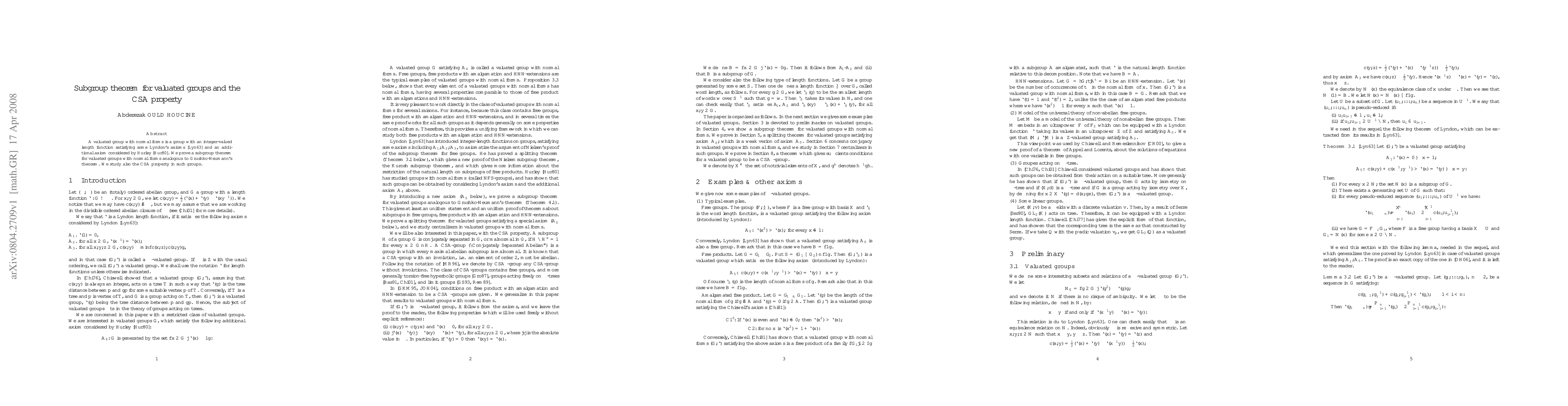 This paper proves a subgroup theorem for valuated groups with normal forms, analogous to Grushko-Neumann's theorem, and explores the CSA (Cancellative-Simple Amalgamation) property within these groups.