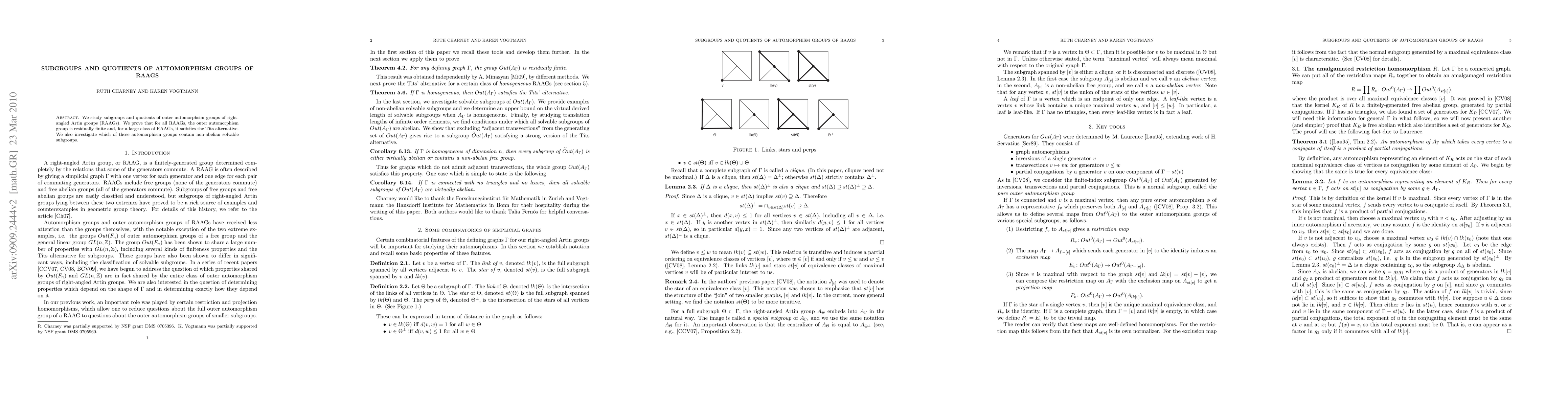 This paper examines subgroups and quotients of the outer automorphism groups of right-angled Artin groups (RAAGs), proving their residual finiteness and satisfaction of the Tits alternative for many RAAGs, while also exploring the presence of non-abelian solvable subgroups.