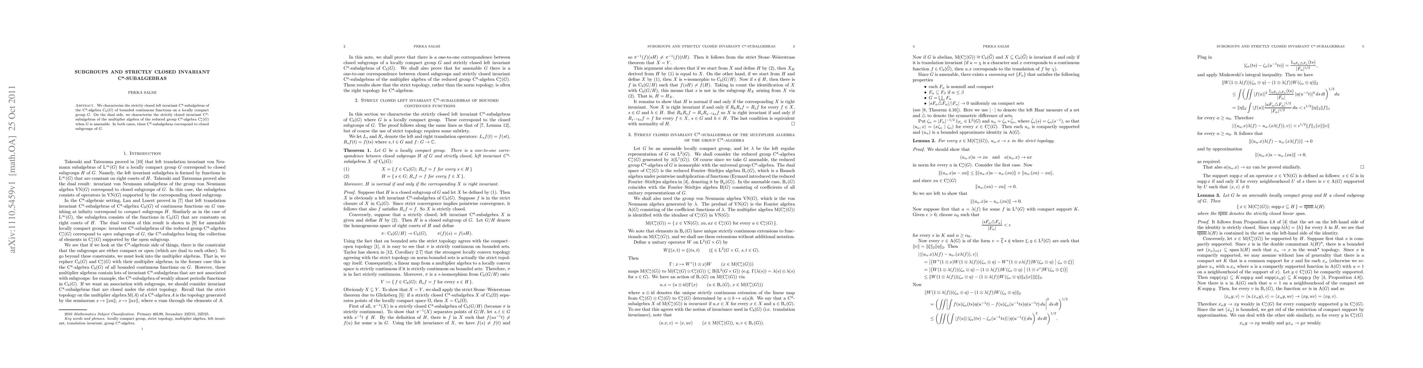 This paper characterises strictly closed left invariant C*-subalgebras in the C*-algebra of bounded continuous functions on a locally compact group, and in the multiplier algebra of the reduced group C*-algebra for amenable groups, showing they correspond to closed subgroups of G.
