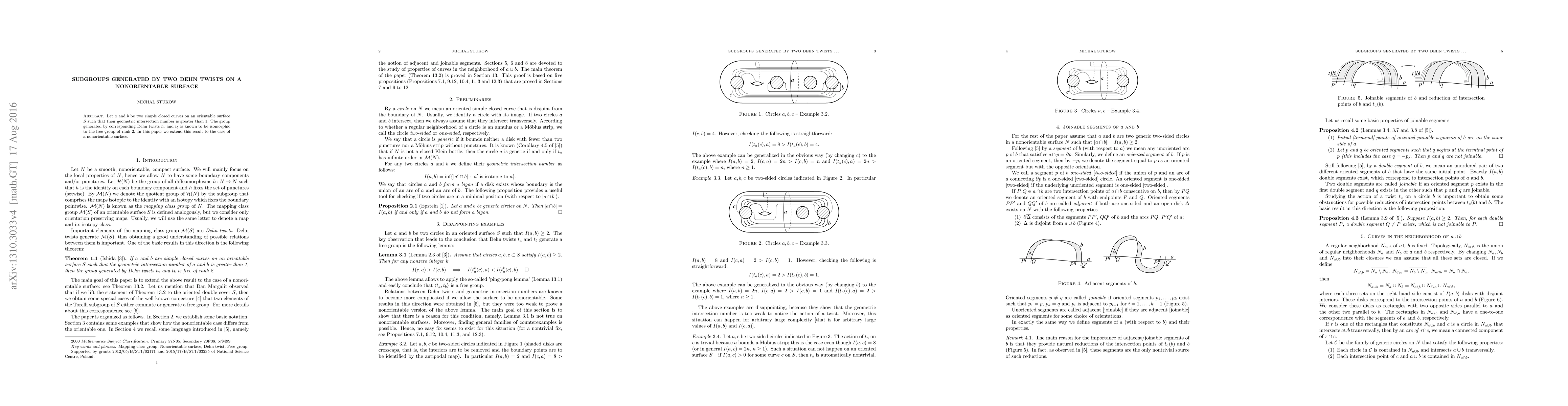 This paper investigates subgroups generated by two Dehn twists on a nonorientable surface, proving that for simple closed curves a and b with a geometric intersection number greater than 1, the group they generate is isomorphic to the free group of rank 2, extending the result from orientable to nonorientable surfaces.