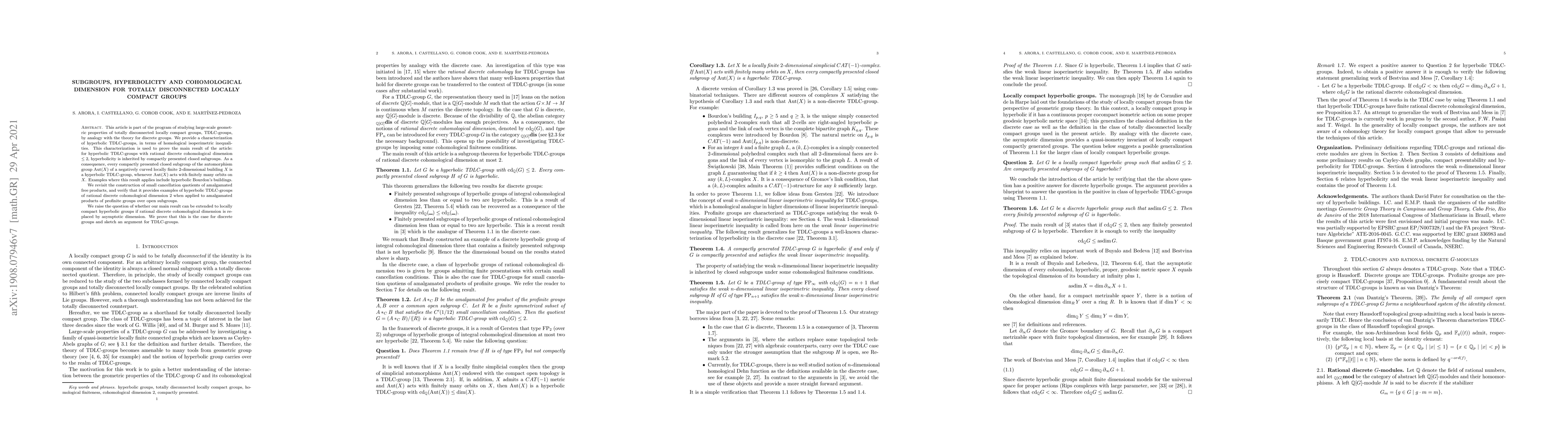 This paper studies hyperbolicity in totally disconnected locally compact groups (TDLC-groups) and shows that hyperbolicity is inherited by compactly presented closed subgroups for those with rational discrete cohomological dimension ≤ 2. It also discusses the applicability to automorphism groups of negatively curved buildings and raises questions regarding extending the result using asymptotic dimension instead of cohomological dimension.