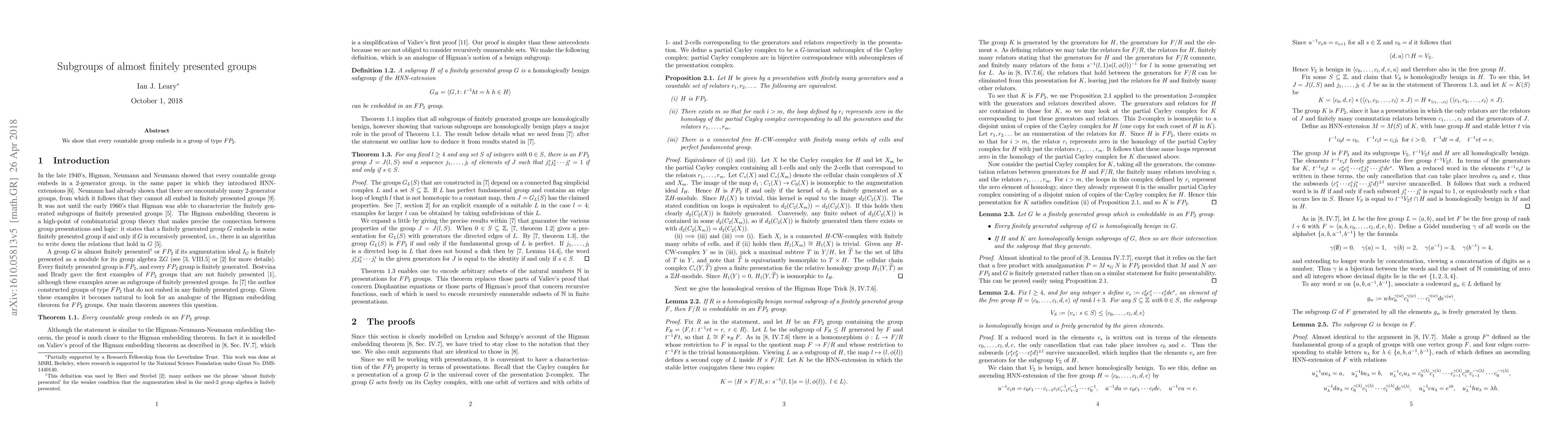 We show that every countable group embeds in a group of type $FP_2$.
