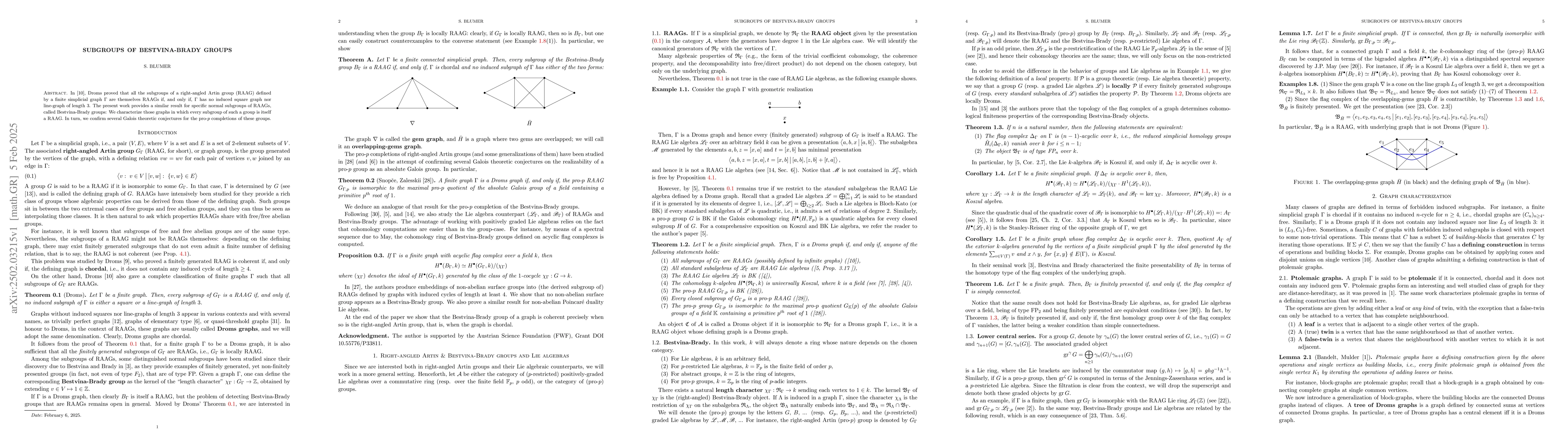 The paper introduces a characterization of graphs whose Bestvina-Brady subgroups are RAAGs, linking graph-theoretic properties to algebraic structures through Lie algebras and Galois theory.