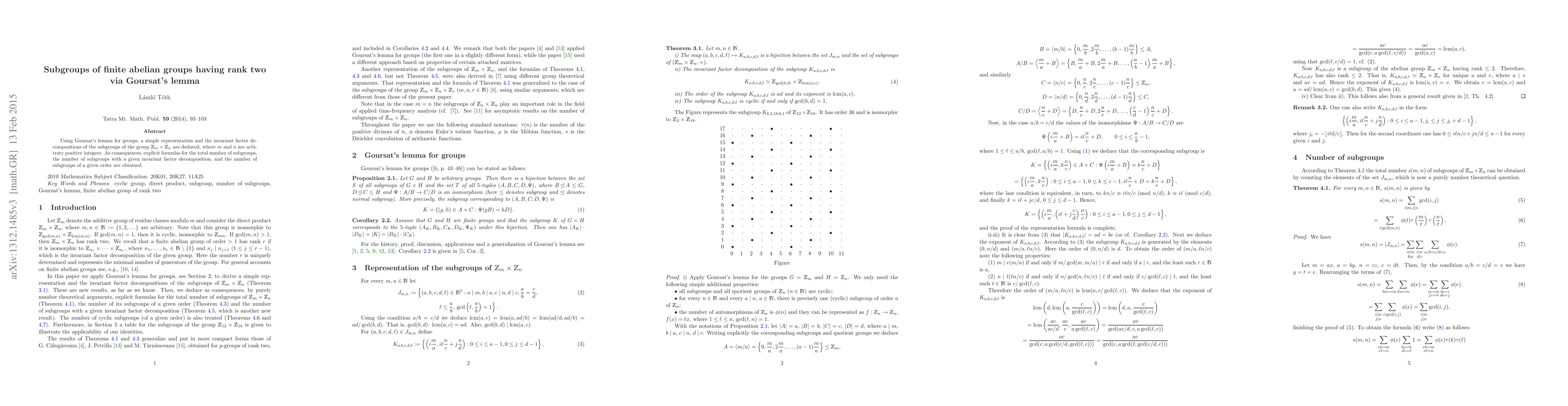 This paper uses Goursat's lemma to find subgroups of finite Abelian groups with rank two, providing formulas for the total number of subgroups and those with specific properties.