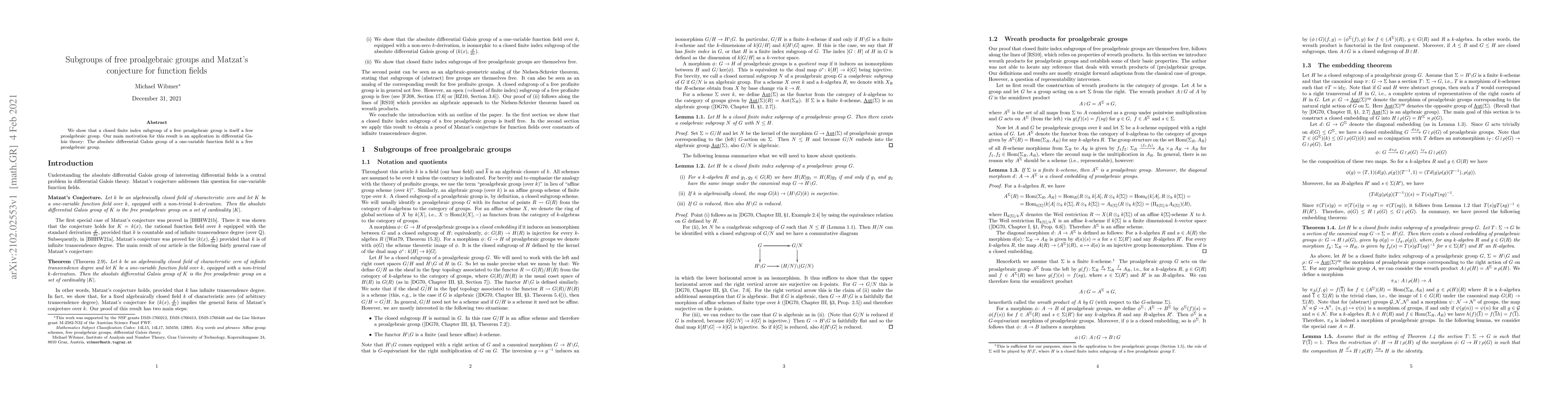 Researchers prove that a closed finite index subgroup of a free proalgebraic group is also free, with implications for differential Galois theory and function fields.
