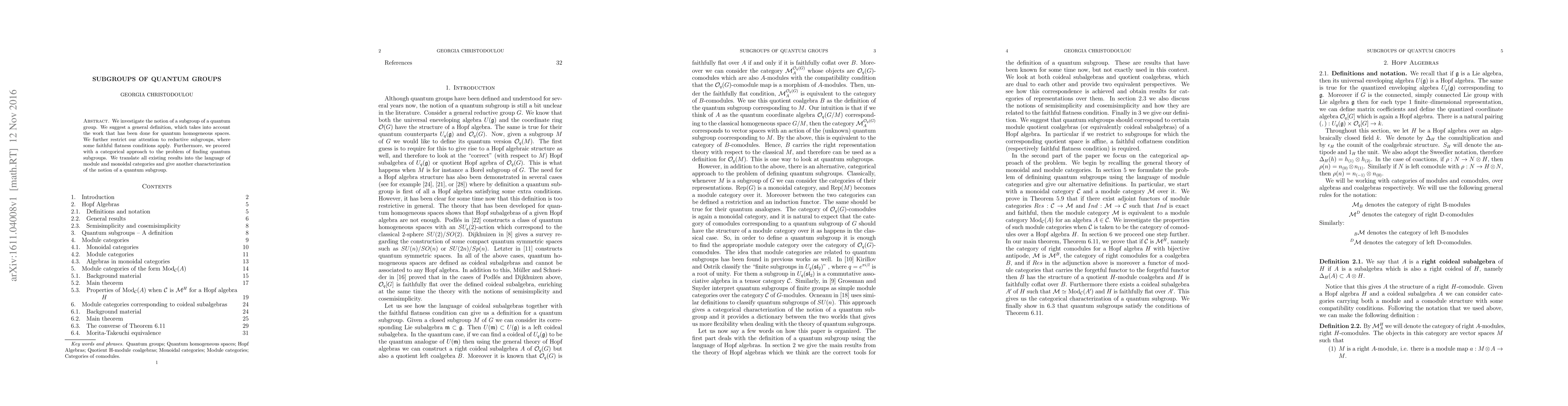 Researchers develop a new definition for subgroups of quantum groups, focusing on reductive subgroups with faithful flatness conditions, and use categorical methods to characterize the notion of a quantum subgroup.