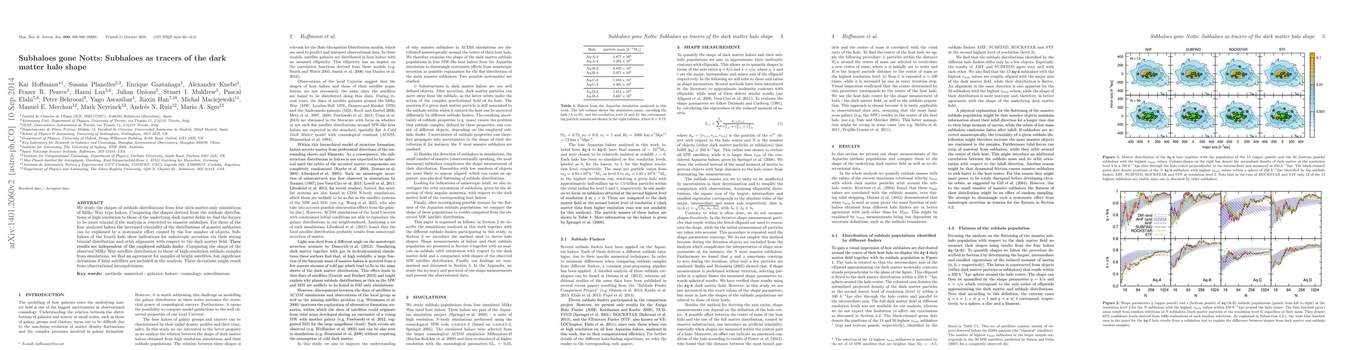 This paper investigates the shapes of subhalo distributions in dark matter simulations of Milky Way-type haloes, finding that massive subhaloes tend to form more triaxial distributions. The study suggests that for three out of four haloes, this effect is due to a low number of subhaloes, while the fourth halo shows anisotropic accretion. Comparisons with the observed Milky Way satellite distribution show agreement for bright satellites but significant deviations for faint satellites, likely due to observational incompleteness.