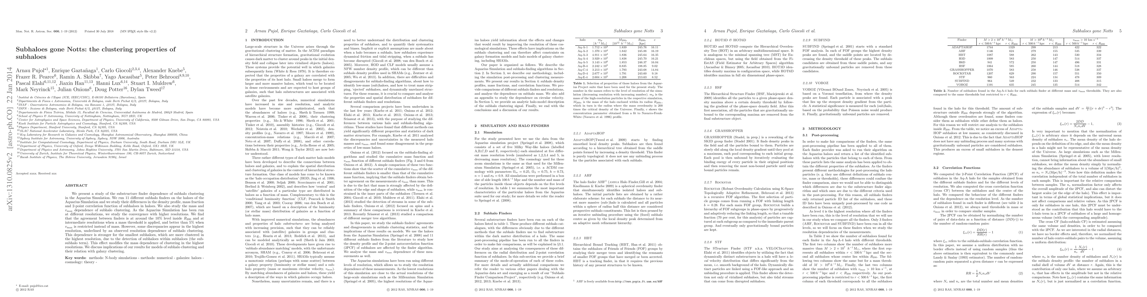 This study examines the clustering properties of subhaloes in the Aquarius Simulation using 11 different subhalo finders, revealing that while agreement is generally within 10% inside R200, discrepancies arise at higher resolutions due to the detection of sub-subhaloes, which impacts the mass dependence of clustering.