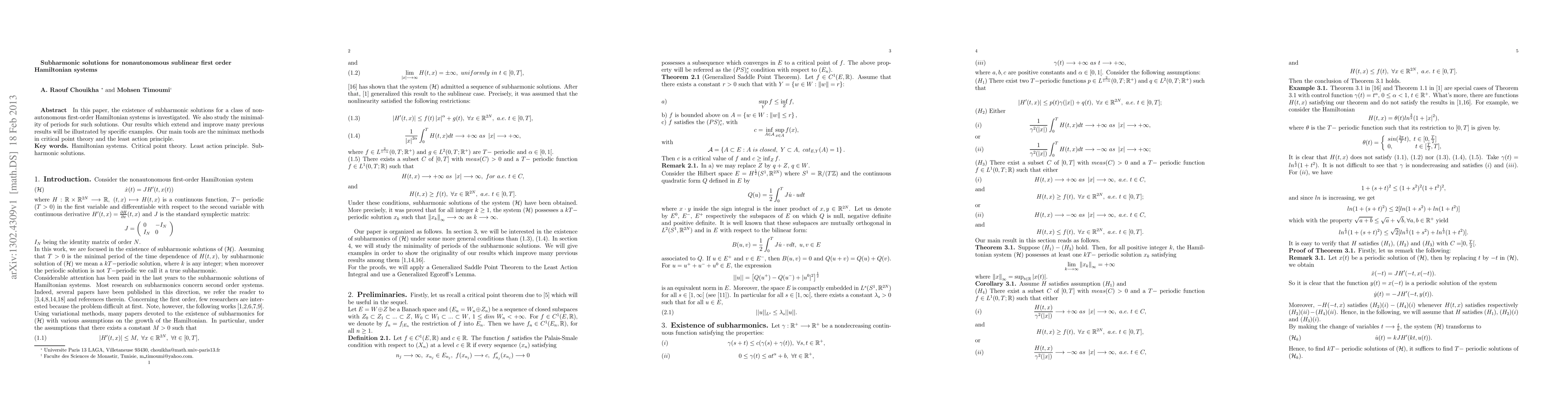 This paper investigates the existence of subharmonic solutions for non-autonomous first-order Hamiltonian systems, using minimax methods in critical point theory and the least action principle to find periodic solutions with minimal periods.