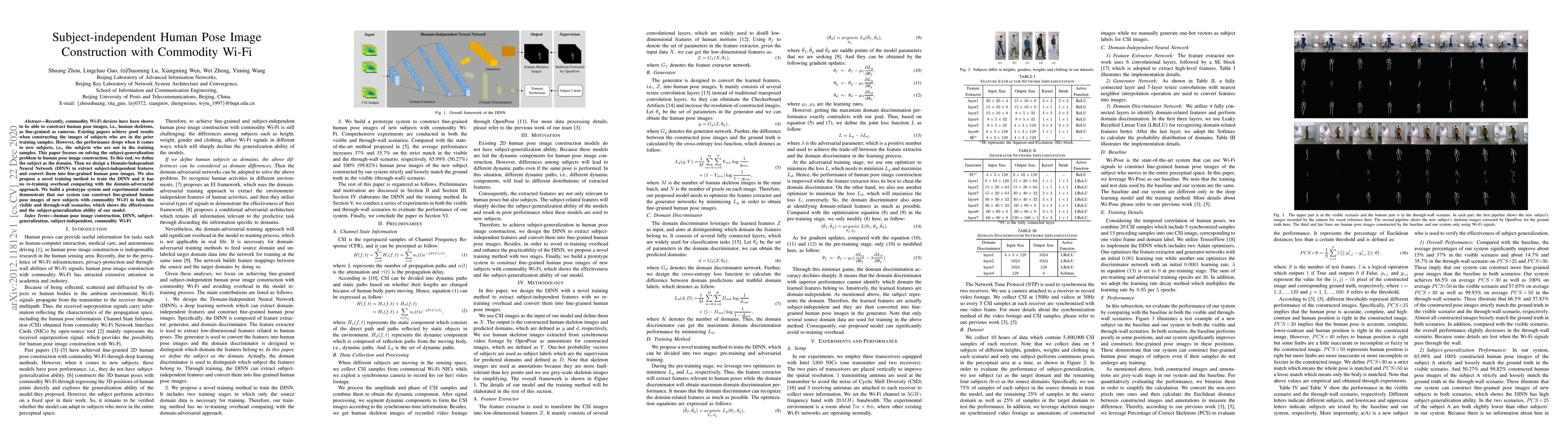 This paper introduces a Domain-Independent Neural Network (DINN) to construct fine-grained human pose images using commodity Wi-Fi, addressing the issue of subject-generalization. The proposed method enables the system to generate accurate pose images for new subjects without re-training, demonstrating effectiveness in both visible and through-wall scenarios.