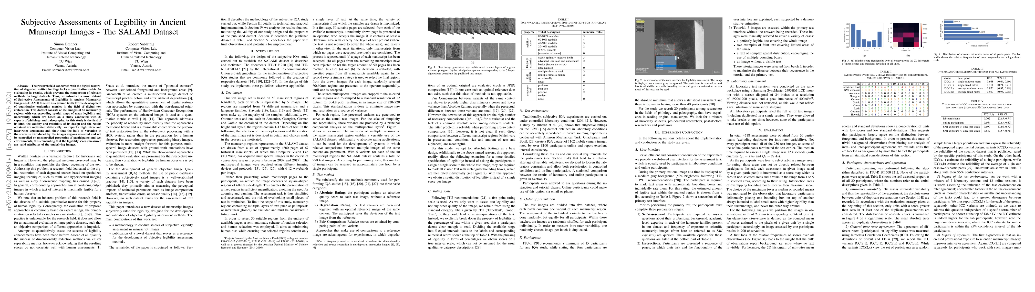 The research field concerned with the digital restoration of degraded written heritage lacks a quantitative metric for evaluating its results, which prevents the comparison of relevant methods on large datasets. Thus, we introduce a novel dataset of Subjective Assessments of Legibility in Ancient Manuscript Images (SALAMI) to serve as a ground truth for the development of quantitative evaluation metrics in the field of digital text restoration. This dataset consists of 250 images of 50 manuscript regions with corresponding spatial maps of mean legibility and uncertainty, which are based on a study conducted with 20 experts of philology and paleography. As this study is the first of its kind, the validity and reliability of its design and the results obtained are motivated statistically: we report a high intra- and inter-rater agreement and show that the bulk of variation in the scores is introduced by the images regions observed and not by controlled or uncontrolled properties of participants and test environments, thus concluding that the legibility scores measured are valid attributes of the underlying images.