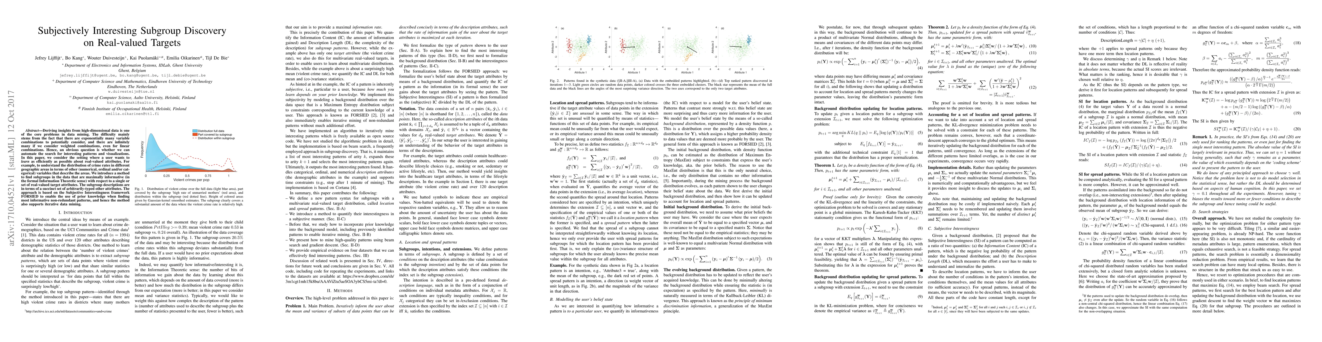 Deriving insights from high-dimensional data is one of the core problems in data mining. The difficulty mainly stems from the fact that there are exponentially many variable combinations to potentially consider, and there are infinitely many if we consider weighted combinations, even for linear combinations. Hence, an obvious question is whether we can automate the search for interesting patterns and visualizations. In this paper, we consider the setting where a user wants to learn as efficiently as possible about real-valued attributes. For example, to understand the distribution of crime rates in different geographic areas in terms of other (numerical, ordinal and/or categorical) variables that describe the areas. We introduce a method to find subgroups in the data that are maximally informative (in the formal Information Theoretic sense) with respect to a single or set of real-valued target attributes. The subgroup descriptions are in terms of a succinct set of arbitrarily-typed other attributes. The approach is based on the Subjective Interestingness framework FORSIED to enable the use of prior knowledge when finding most informative non-redundant patterns, and hence the method also supports iterative data mining.
