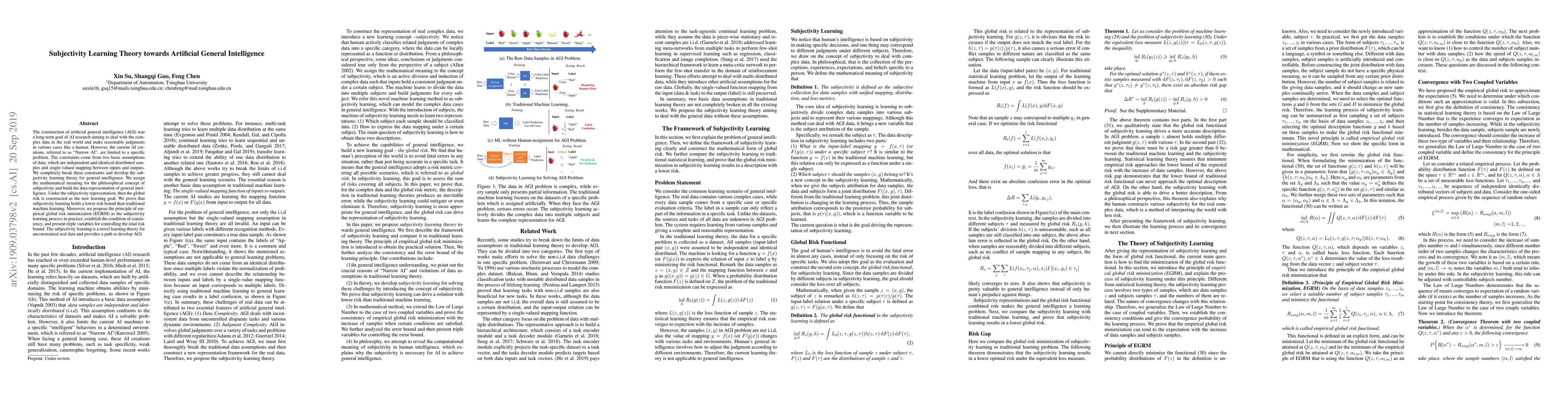 Researchers develop a new learning theory called subjectivity learning to create artificial general intelligence (AGI) that can handle complex data and make judgments like humans. Their approach has been shown to hold a lower risk bound than traditional machine learning methods.