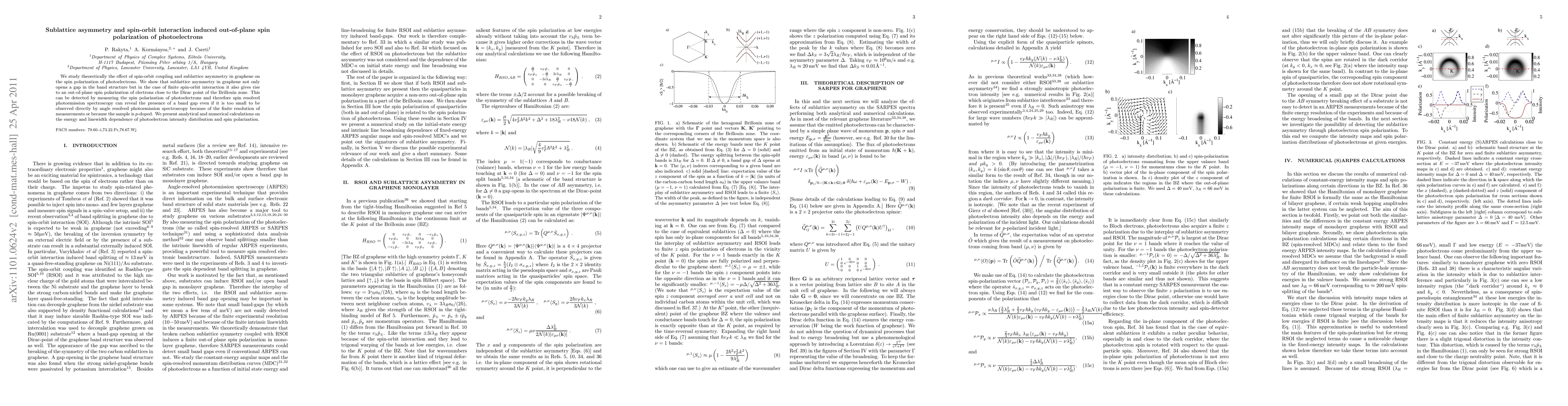 This paper theoretically investigates how spin-orbit coupling and sublattice asymmetry in graphene lead to out-of-plane spin polarization of photoelectrons, revealing a band gap that may be too small to detect directly. Spin resolved photoemission spectroscopy can thus identify such gaps.