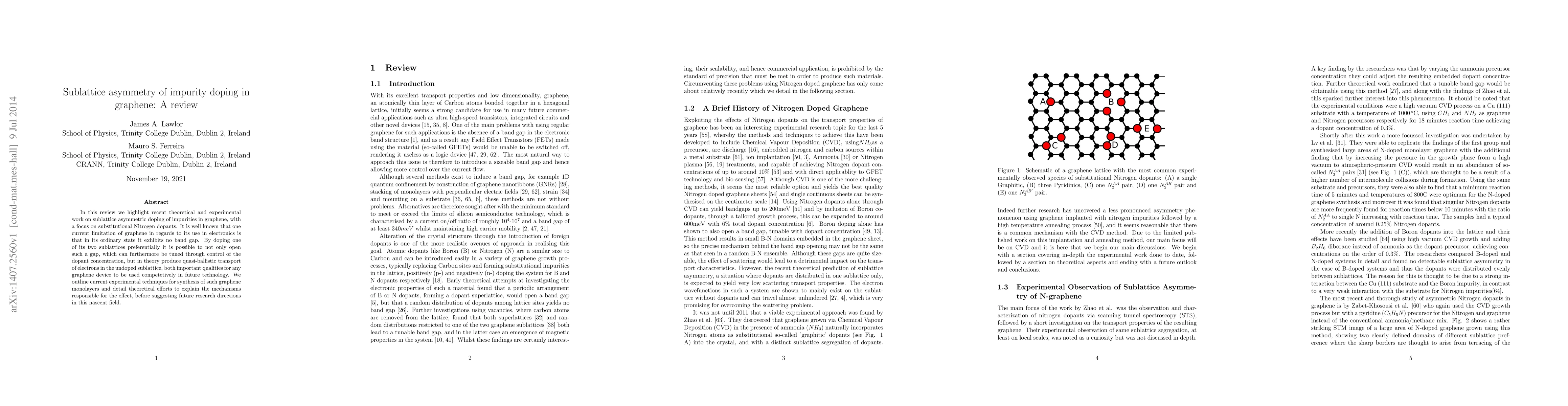 This review examines recent advancements in the theoretical and experimental study of sublattice asymmetric doping of impurities, particularly nitrogen, in graphene. It discusses how preferential doping can open a tunable band gap and enable quasi-ballistic electron transport, enhancing graphene's potential for electronic applications, while also outlining current synthesis methods and future research directions.