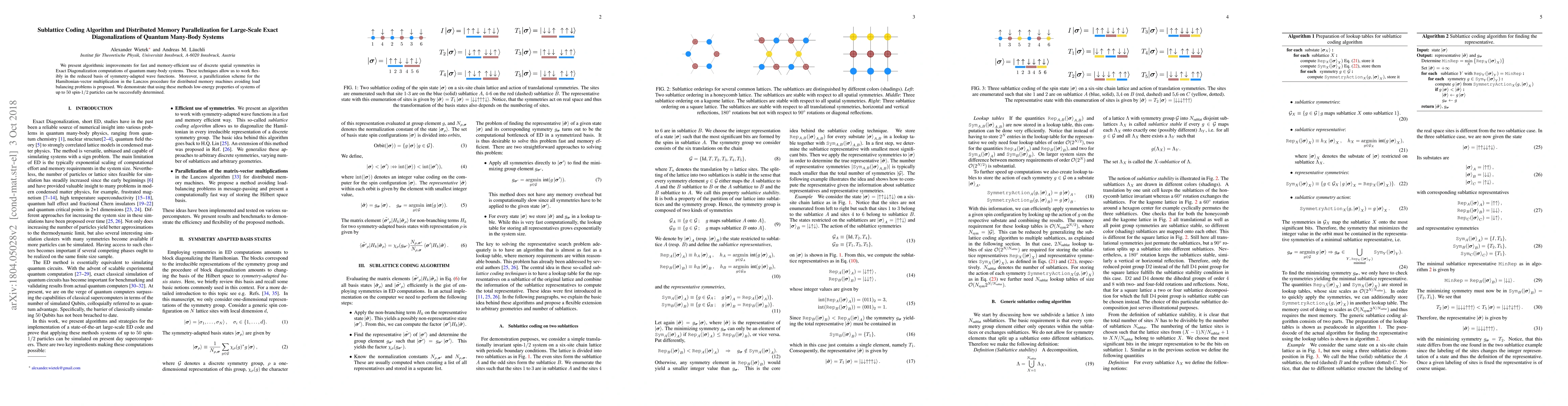 This paper introduces enhanced algorithms for efficient Exact Diagonalization of quantum many-body systems, leveraging discrete spatial symmetries and distributed memory parallelization to handle systems up to 50 spin-1/2 particles, while avoiding load balancing issues.