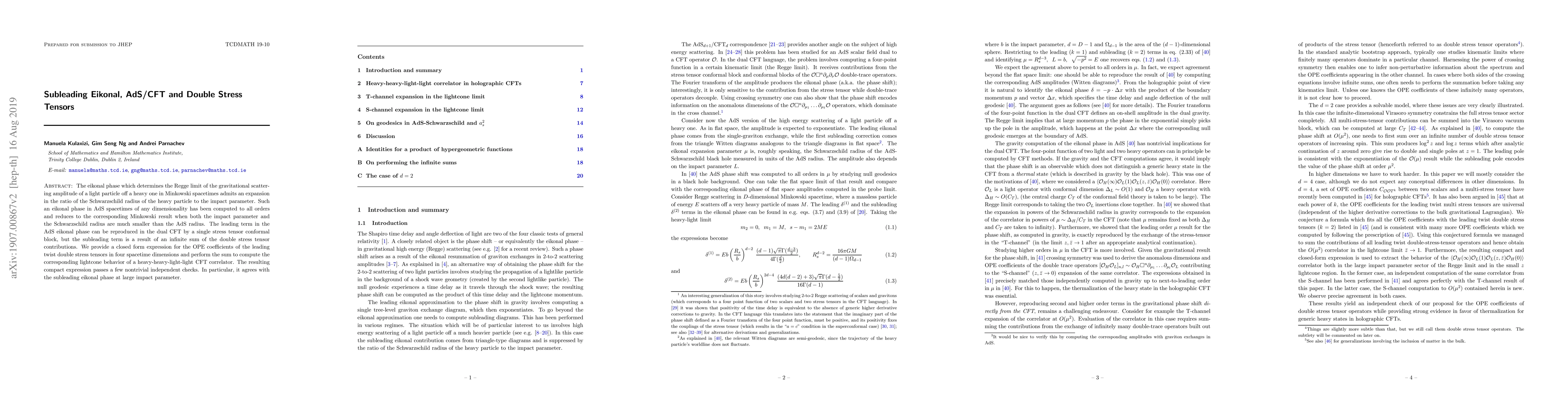 This paper computes the subleading eikonal phase in AdS spacetimes, showing it arises from an infinite sum of double stress tensor contributions in the dual CFT. It provides a closed form for the leading twist double stress tensor OPE coefficients and demonstrates agreement with the subleading eikonal phase at large impact parameters.