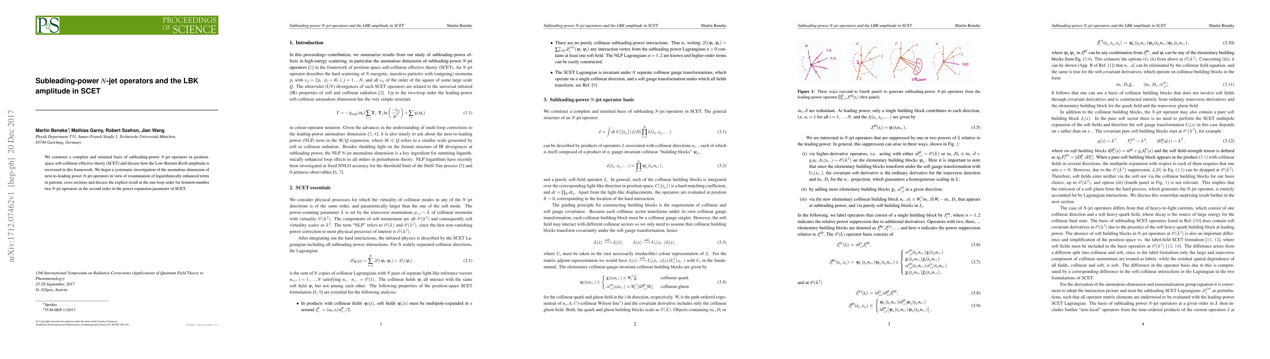 We construct a complete and minimal basis of subleading-power N-jet operators in position-space soft-collinear effective theory (SCET) and discuss how the Low-Burnett-Kroll amplitude is recovered in this framework. We begin a systematic investigation of the anomalous dimension of next-to-leading power N-jet operators in view of resummation of logarithmically enhanced terms in partonic cross sections and discuss the explicit result at the one-loop order for fermion-number two N-jet operators at the second order in the power expansion parameter of SCET.