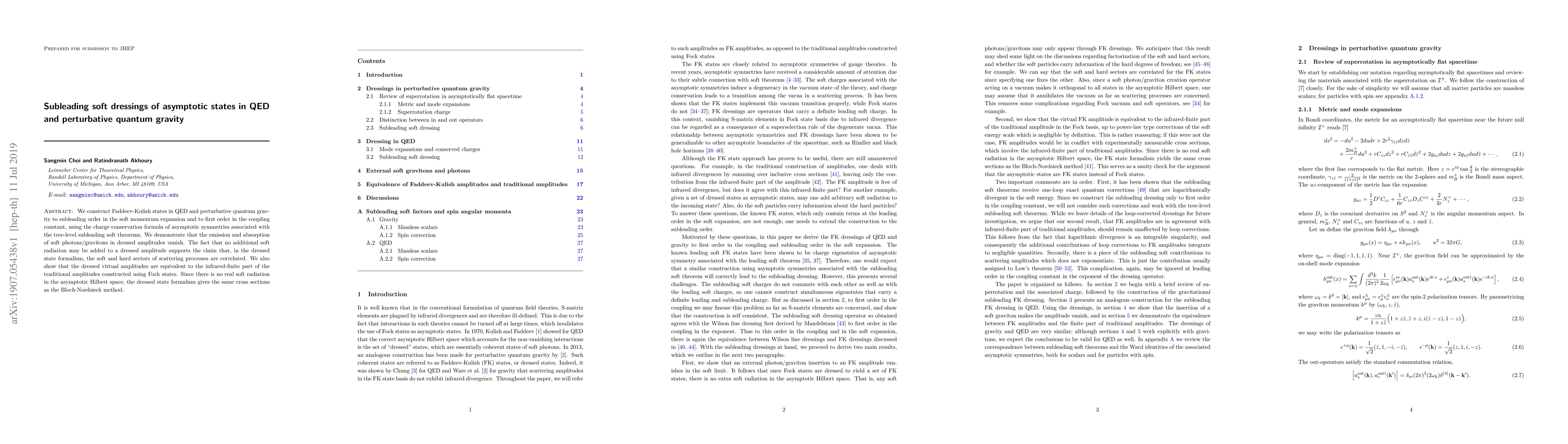 We construct Faddeev-Kulish states in QED and perturbative quantum gravity to subleading order in the soft momentum expansion and to first order in the coupling constant, using the charge conservation formula of asymptotic symmetries associated with the tree-level subleading soft theorems. We demonstrate that the emission and absorption of soft photons/gravitons in dressed amplitudes vanish. The fact that no additional soft radiation may be added to a dressed amplitude supports the claim that, in the dressed state formalism, the soft and hard sectors of scattering processes are correlated. We also show that the dressed virtual amplitudes are equivalent to the infrared-finite part of the traditional amplitudes constructed using Fock states. Since there is no real soft radiation in the asymptotic Hilbert space, the dressed state formalism gives the same cross sections as the Bloch-Nordsieck method.