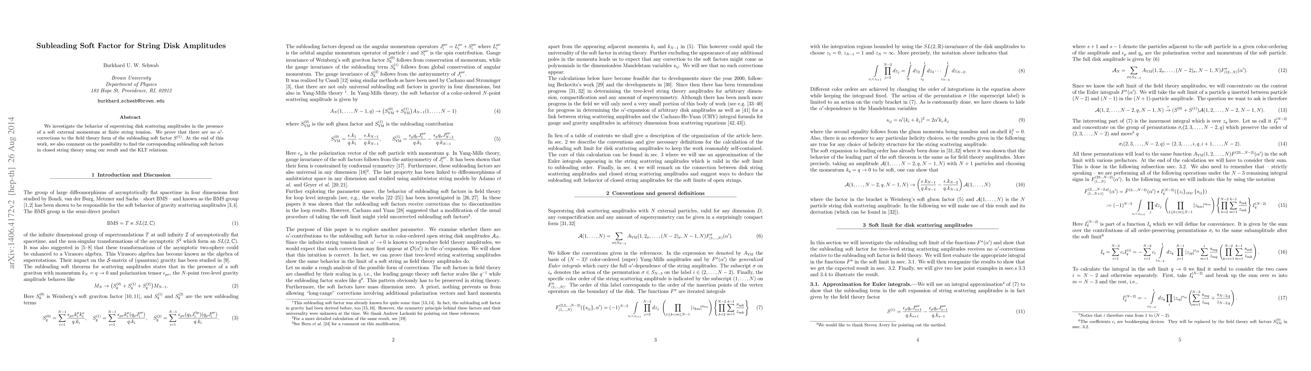 This paper examines superstring disk scattering amplitudes with soft external momenta, proving no $\alpha'$-corrections to the subleading soft factor $S^{(1)}$. It also discusses the potential for extending these findings to closed string theory using KLT relations.
