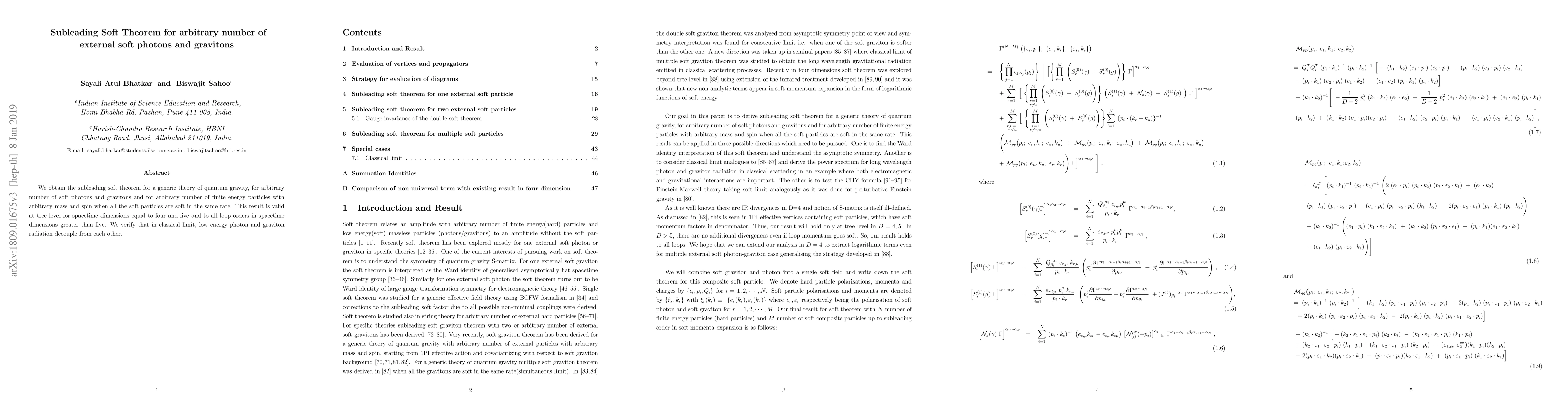 This paper derives the subleading soft theorem for quantum gravity, applicable to any number of soft photons and gravitons alongside arbitrary finite energy particles, valid at tree level in four and five dimensions and to all loops in higher dimensions. It also confirms decoupling of low-energy photon and graviton radiation in the classical limit.
