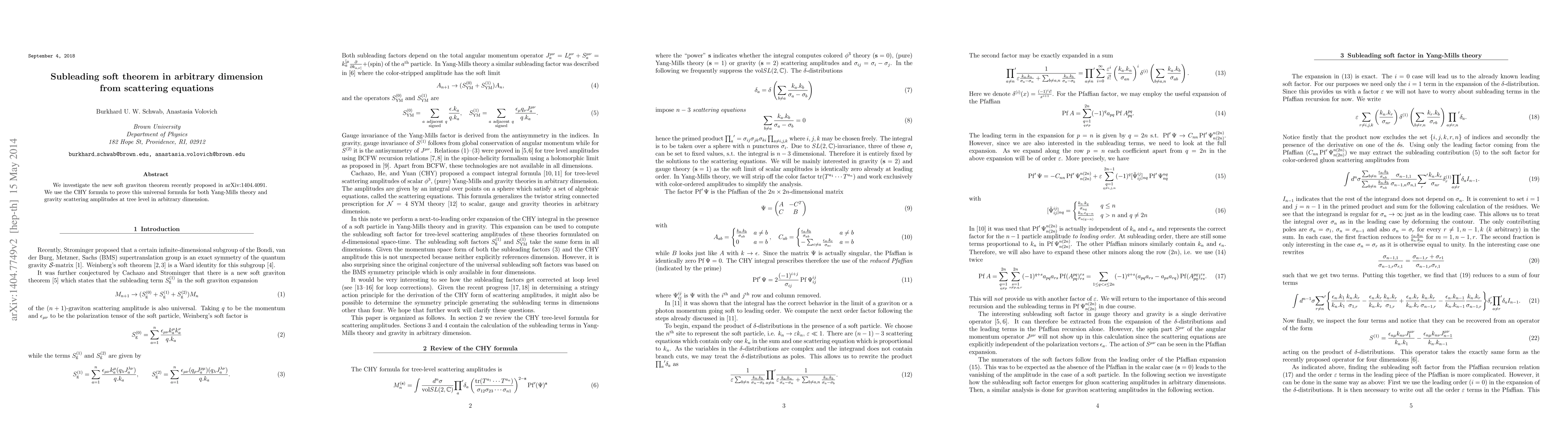 We investigate the new soft graviton theorem recently proposed in arXiv:1404.4091. We use the CHY formula to prove this universal formula for both Yang-Mills theory and gravity scattering amplitudes at tree level in arbitrary dimension.