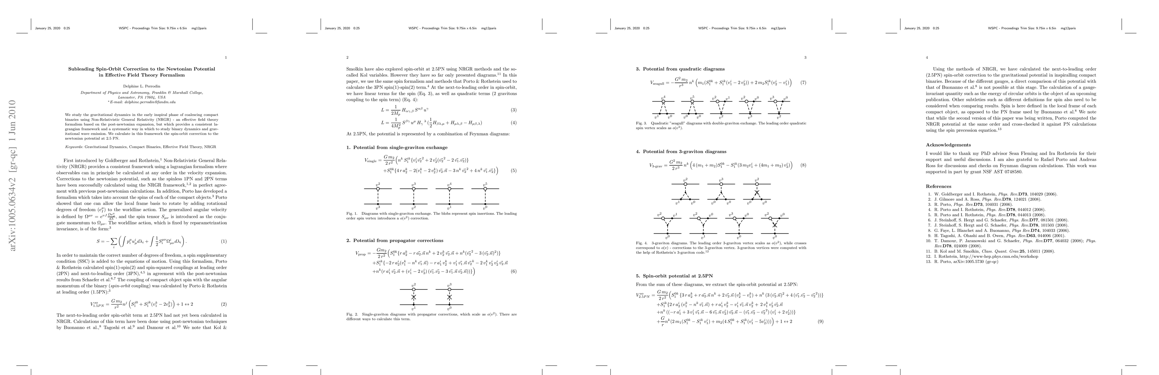 We study the gravitational dynamics in the early inspiral phase of coalescing compact binaries using Non-Relativistic General Relativity (NRGR) - an effective field theory formalism based on the post-newtonian expansion, but which provides a consistent lagrangian framework and a systematic way in which to study binary dynamics and gravitational wave emission. We calculate in this framework the spin-orbit correction to the newtonian potential at 2.5 PN.