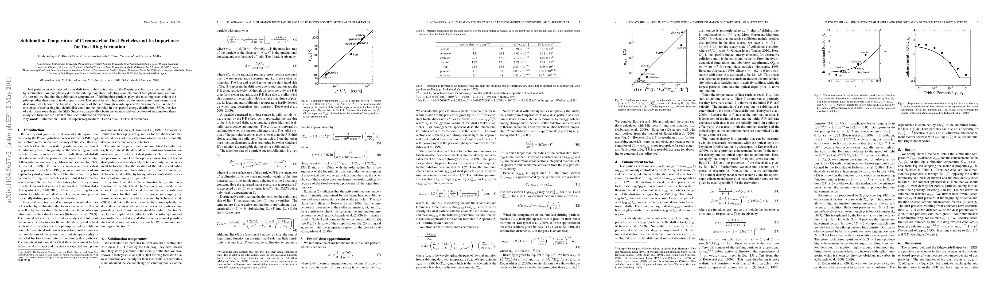 Dust particles in orbit around a star drift toward the central star by the Poynting-Robertson effect and pile up by sublimation. We analytically derive the pile-up magnitude, adopting a simple model for optical cross sections. As a result, we find that the sublimation temperature of drifting dust particles plays the most important role in the pile-up rather than their optical property does. Dust particles with high sublimation temperature form a significant dust ring, which could be found in the vicinity of the sun through in-situ spacecraft measurements. While the existence of such a ring in a debris disk could not be identified in the spectral energy distribution (SED), the size of a dust-free zone shapes the SED. Since we analytically obtain the location and temperature of sublimation, these analytical formulae are useful to find such sublimation evidences.