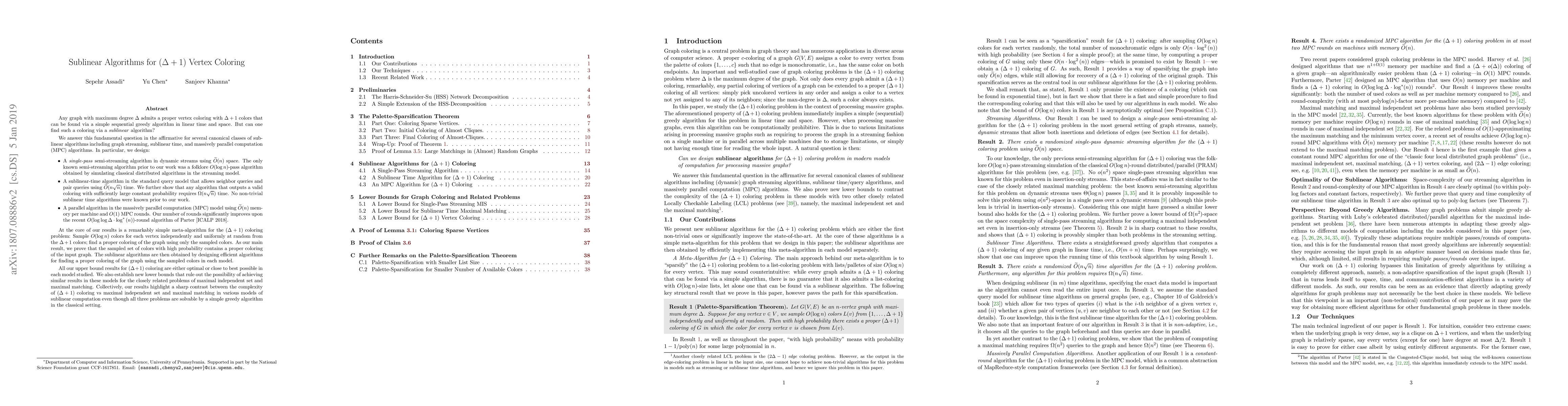 This paper presents sublinear algorithms for $(\Delta + 1)$ vertex coloring in various computational models, including semi-streaming, sublinear time, and MPC. The key innovation is a simple meta-algorithm that samples colors and finds a proper coloring using only the sampled set, achieving significant improvements over prior work in space and time complexity.