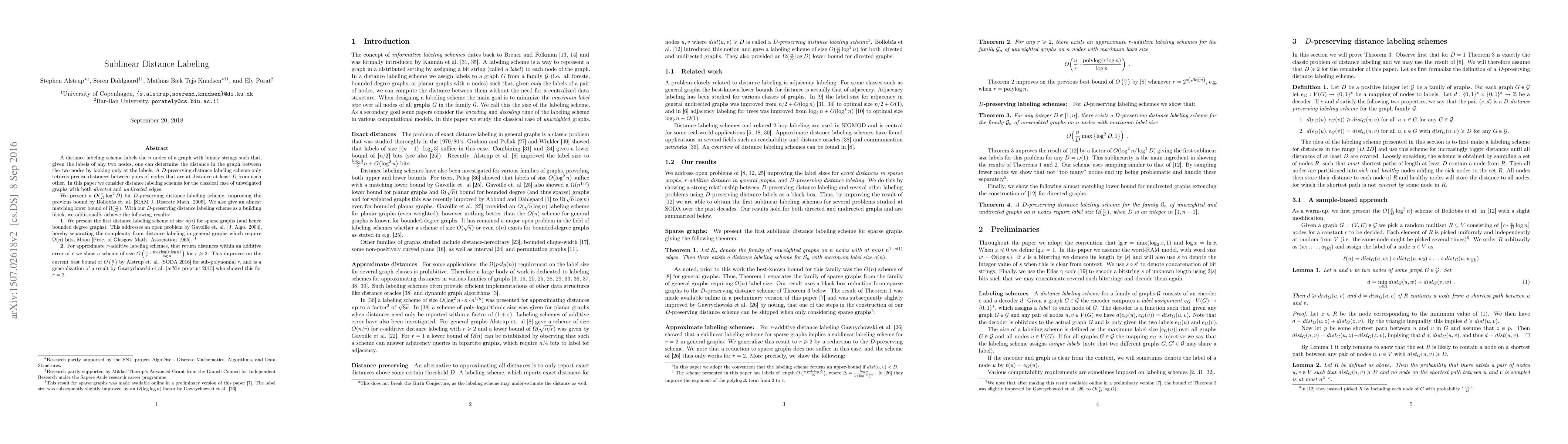 This paper presents an improved $O(\frac{n}{D}\log^2 D)$ bit $D$-preserving distance labeling scheme for unweighted graphs, surpassing previous bounds. It also introduces the first $o(n)$ bit labeling for sparse graphs, addressing an open problem, and enhances approximate $r$-additive labeling schemes for sub-polynomial $r$.