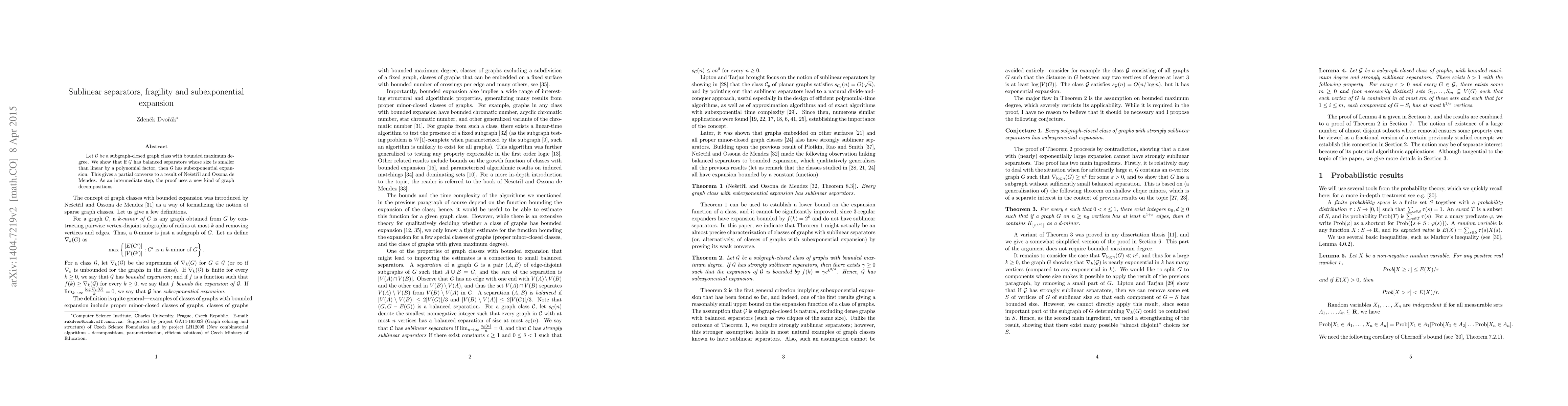 This paper demonstrates that subgraph-closed graph classes with bounded maximum degree and sublinear balanced separators exhibit subexponential expansion. The intermediate proof employs novel graph decompositions, providing a partial converse to a prior result by Nešetřil and Ossona de Mendez.