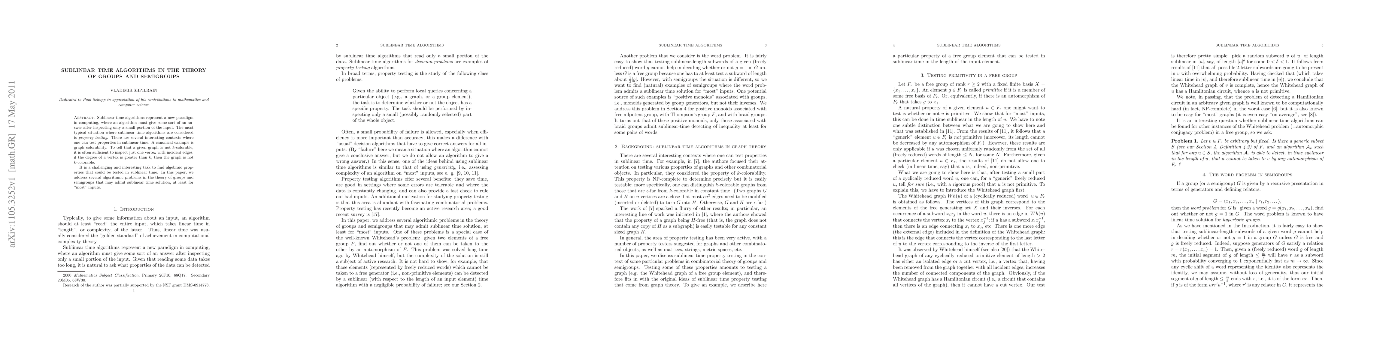 Researchers developed sublinear time algorithms for testing properties in groups and semigroups, solving problems like graph colorability with a focus on efficient input inspection.