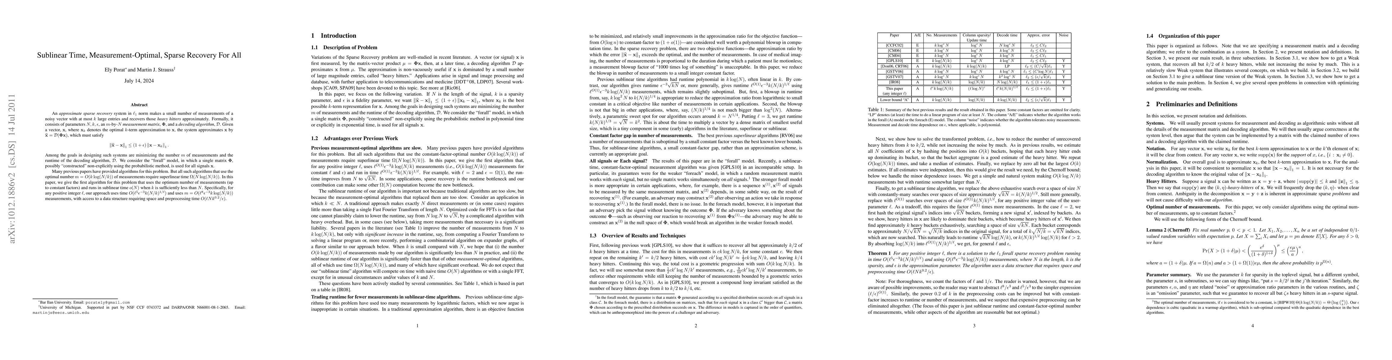 An approximate sparse recovery system in ell_1 norm formally consists of parameters N, k, epsilon an m-by-N measurement matrix, Phi, and a decoding algorithm, D. Given a vector, x, where x_k denotes the optimal k-term approximation to x, the system approximates x by hat_x = D(Phi.x), which must satisfy ||hat_x - x||_1 <= (1+epsilon)||x - x_k||_1. Among the goals in designing such systems are minimizing m and the runtime of D. We consider the "forall" model, in which a single matrix Phi is used for all signals x. All previous algorithms that use the optimal number m=O(k log(N/k)) of measurements require superlinear time Omega(N log(N/k)). In this paper, we give the first algorithm for this problem that uses the optimum number of measurements (up to a constant factor) and runs in sublinear time o(N) when k=o(N), assuming access to a data structure requiring space and preprocessing O(N).