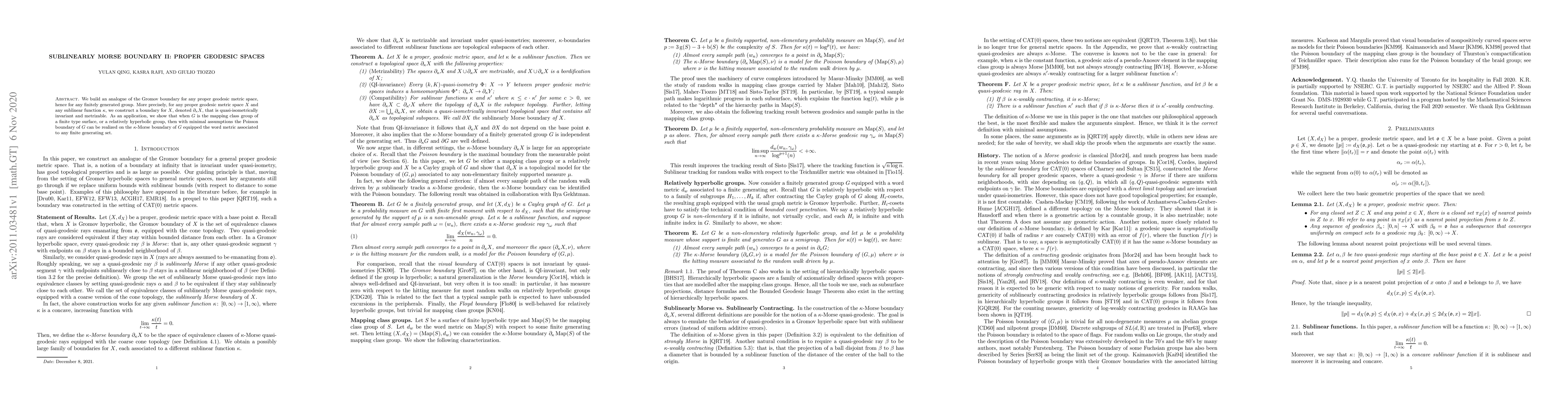 We build an analogue of the Gromov boundary for any proper geodesic metric space, hence for any finitely generated group. More precisely, for any proper geodesic metric space $X$ and any sublinear function $\kappa$, we construct a boundary for $X$, denoted $\mathcal{\partial}_{\kappa} X$, that is quasi-isometrically invariant and metrizable. As an application, we show that when $G$ is the mapping class group of a finite type surface, or a relatively hyperbolic group, then with minimal assumptions the Poisson boundary of $G$ can be realized on the $\kappa$-Morse boundary of $G$ equipped the word metric associated to any finite generating set.