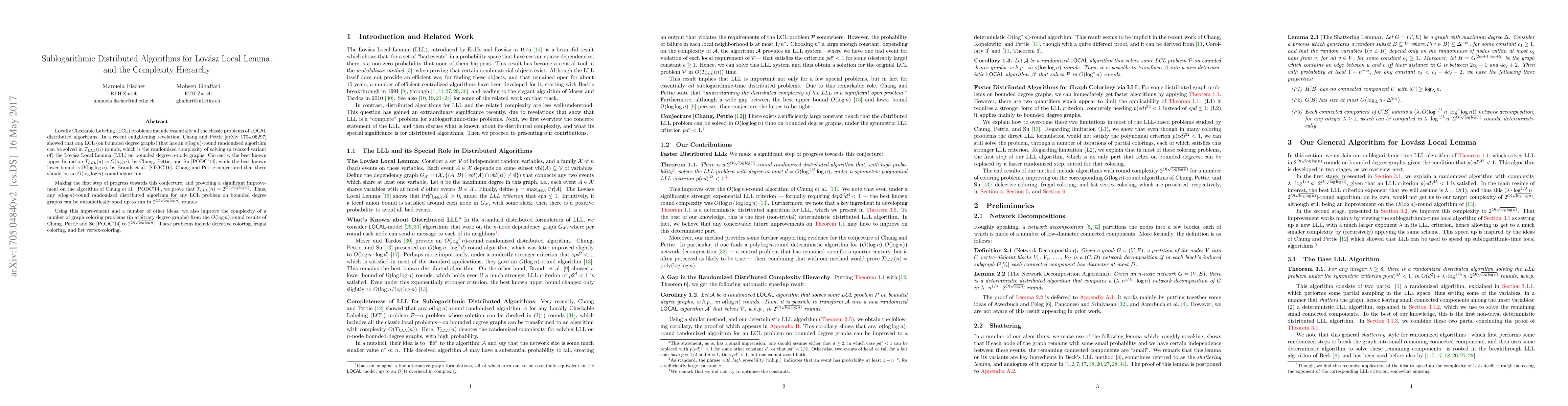 Locally Checkable Labeling (LCL) problems include essentially all the classic problems of $\mathsf{LOCAL}$ distributed algorithms. In a recent enlightening revelation, Chang and Pettie [arXiv 1704.06297] showed that any LCL (on bounded degree graphs) that has an $o(\log n)$-round randomized algorithm can be solved in $T_{LLL}(n)$ rounds, which is the randomized complexity of solving (a relaxed variant of) the Lov\'asz Local Lemma (LLL) on bounded degree $n$-node graphs. Currently, the best known upper bound on $T_{LLL}(n)$ is $O(\log n)$, by Chung, Pettie, and Su [PODC'14], while the best known lower bound is $\Omega(\log\log n)$, by Brandt et al. [STOC'16]. Chang and Pettie conjectured that there should be an $O(\log\log n)$-round algorithm. Making the first step of progress towards this conjecture, and providing a significant improvement on the algorithm of Chung et al. [PODC'14], we prove that $T_{LLL}(n)= 2^{O(\sqrt{\log\log n})}$. Thus, any $o(\log n)$-round randomized distributed algorithm for any LCL problem on bounded degree graphs can be automatically sped up to run in $2^{O(\sqrt{\log\log n})}$ rounds. Using this improvement and a number of other ideas, we also improve the complexity of a number of graph coloring problems (in arbitrary degree graphs) from the $O(\log n)$-round results of Chung, Pettie and Su [PODC'14] to $2^{O(\sqrt{\log\log n})}$. These problems include defective coloring, frugal coloring, and list vertex-coloring.
