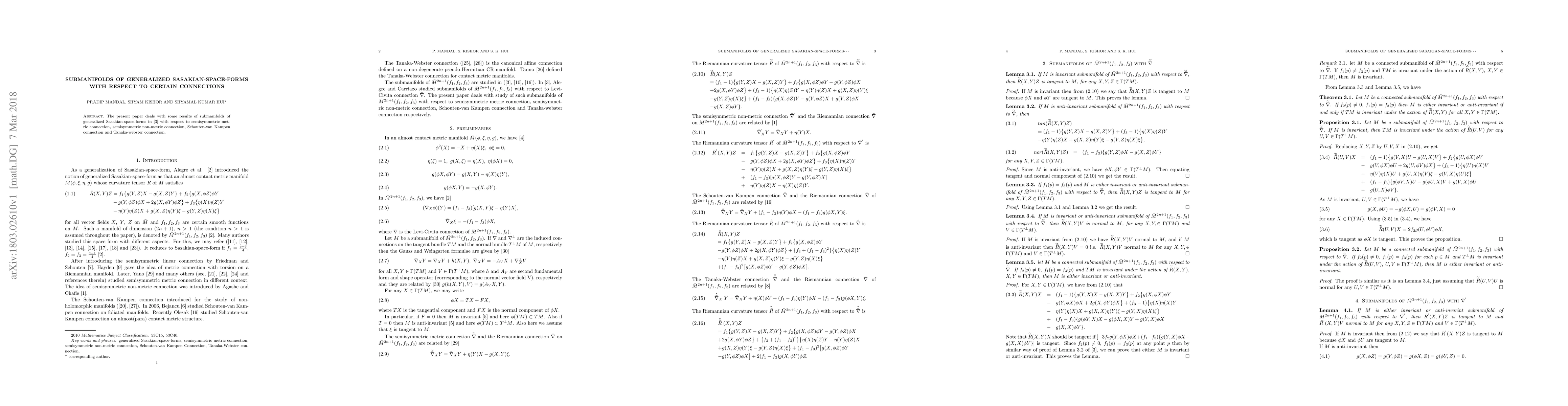 The paper presents detailed lemmas, propositions, and theorems characterizing the behavior of submanifolds under various connections, contributing to the theoretical framework of differential geometry on generalized Sasakian-space-forms.