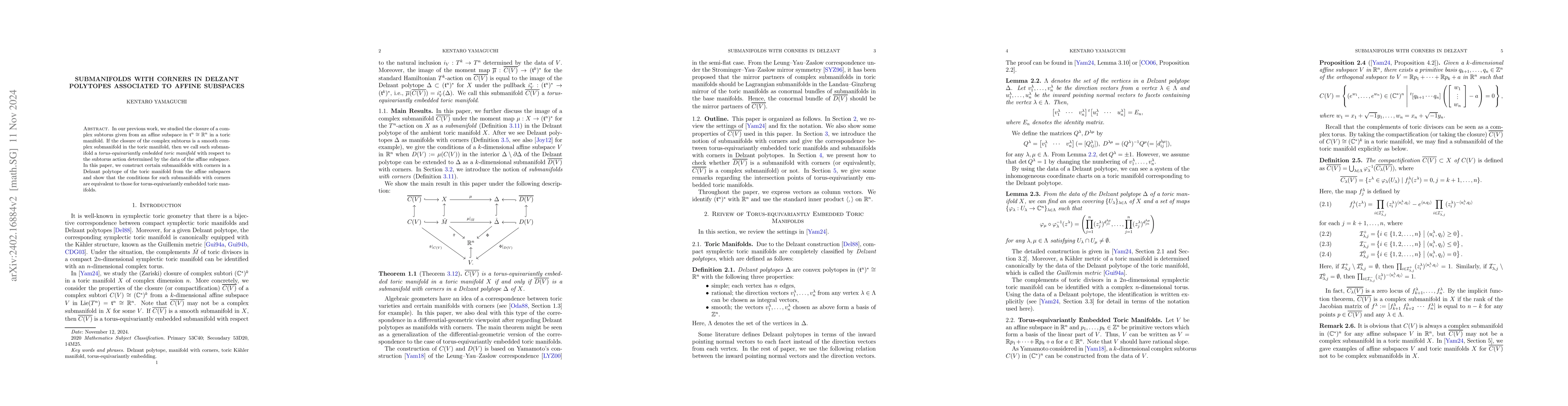 This paper constructs submanifolds with boundary and corners in Delzant polytopes associated with affine subspaces, and demonstrates that these conditions are equivalent to those for torus-equivalently embedded toric manifolds, extending previous work on compactification of complex subtori.